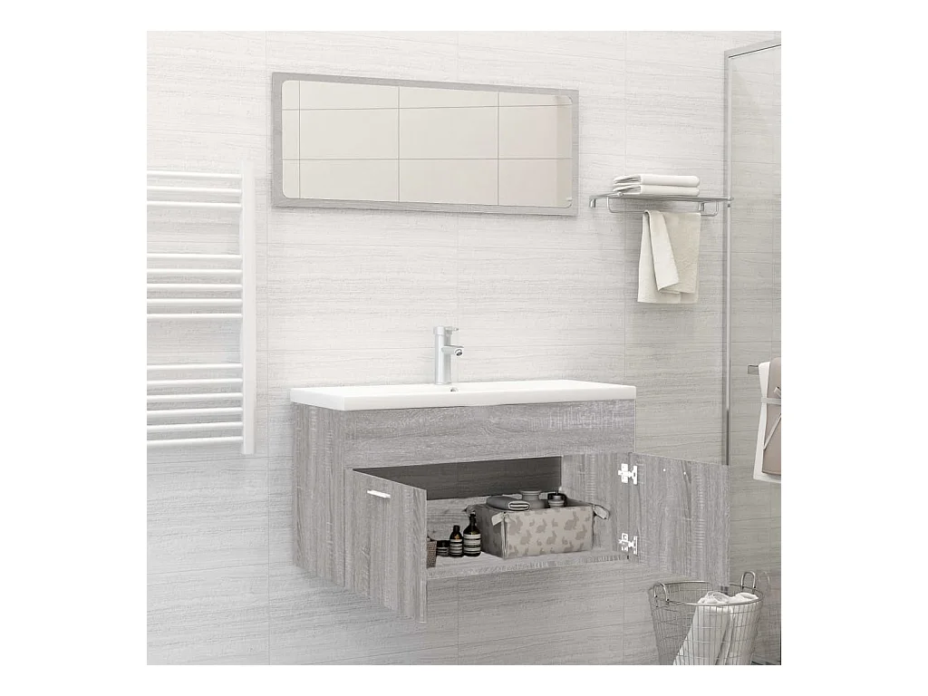 3 pcs Conjunto móveis casa de banho madeira proc. cinza sonoma PT431072