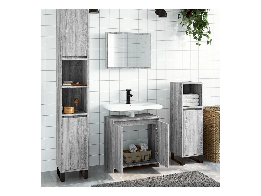 3 pcs Conjunto móveis casa de banho madeira proc. cinza sonoma PT879397