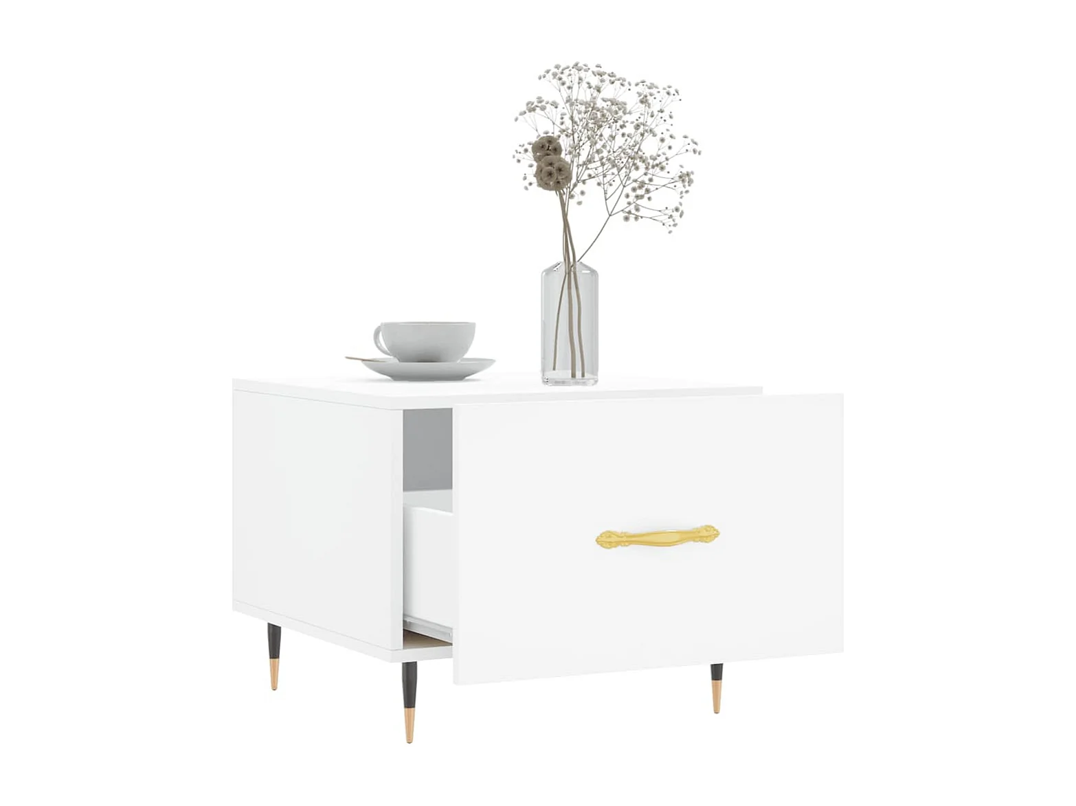 Mesa de centro | Mesa de apoio 50x50x40 cm madeira processada branco brilhante
