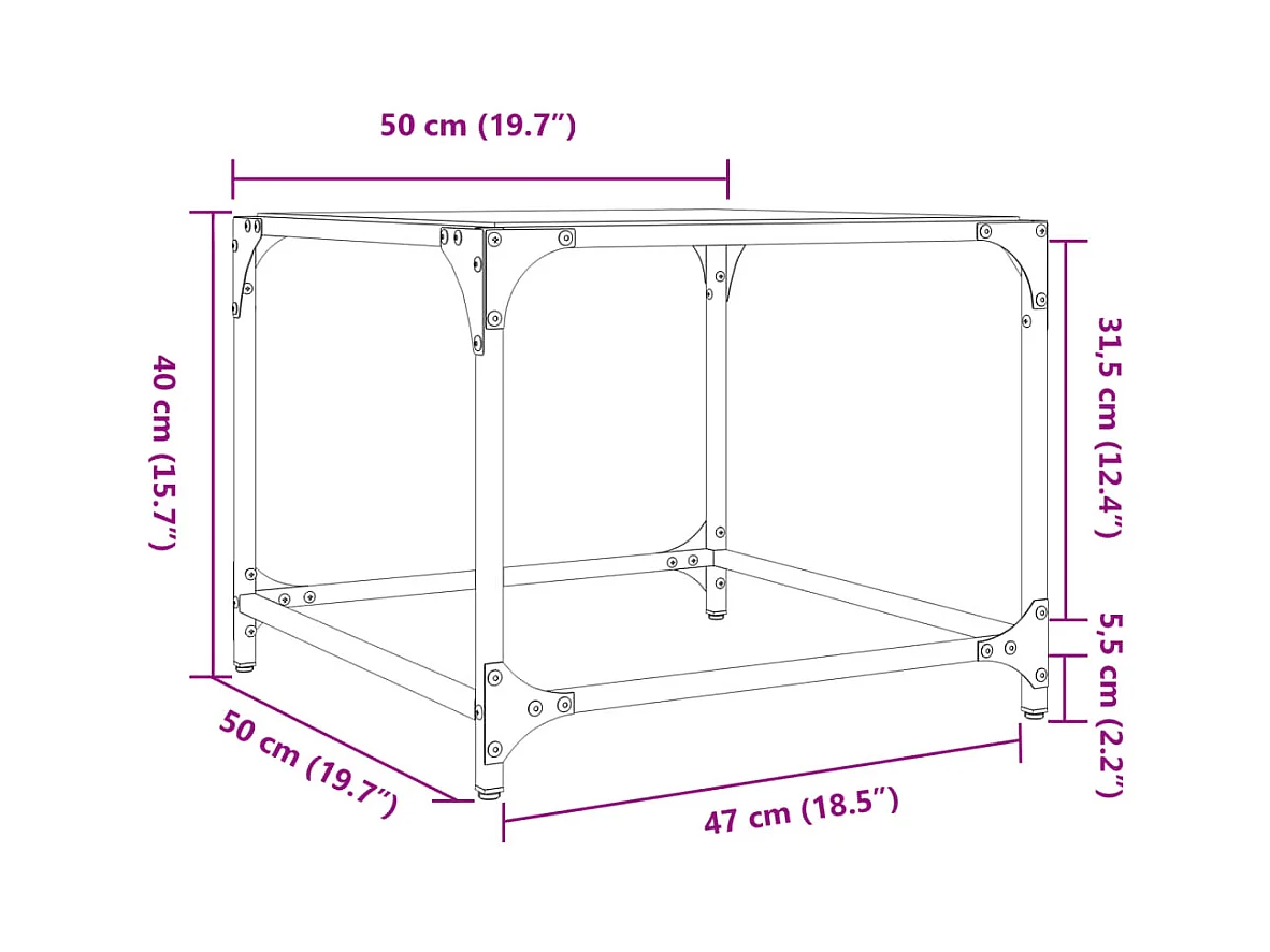 2 pcs Mesas de centro | Mesa de apoio | Mesa de café c/ topo em vidro preto 50x50x40 cm aço