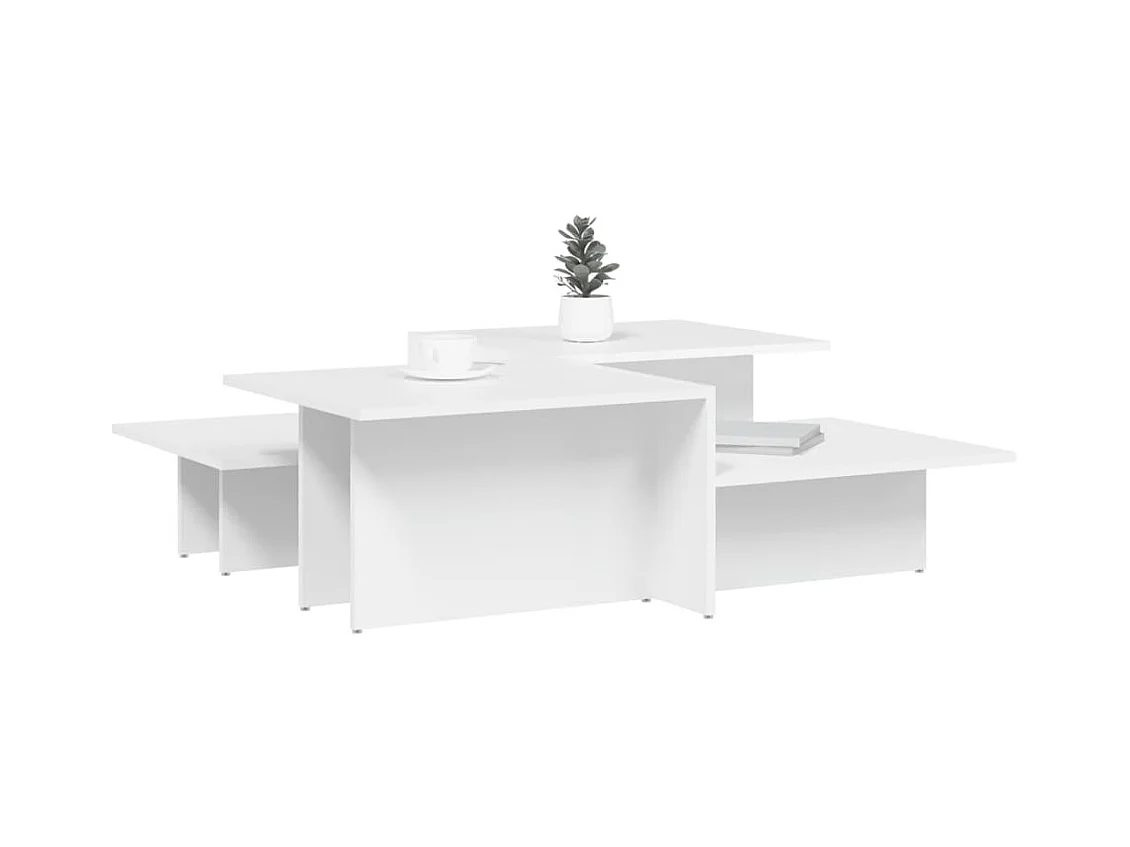 2 pcs Mesas de centro | Mesa de apoio | Mesa de café derivados de madeira branco
