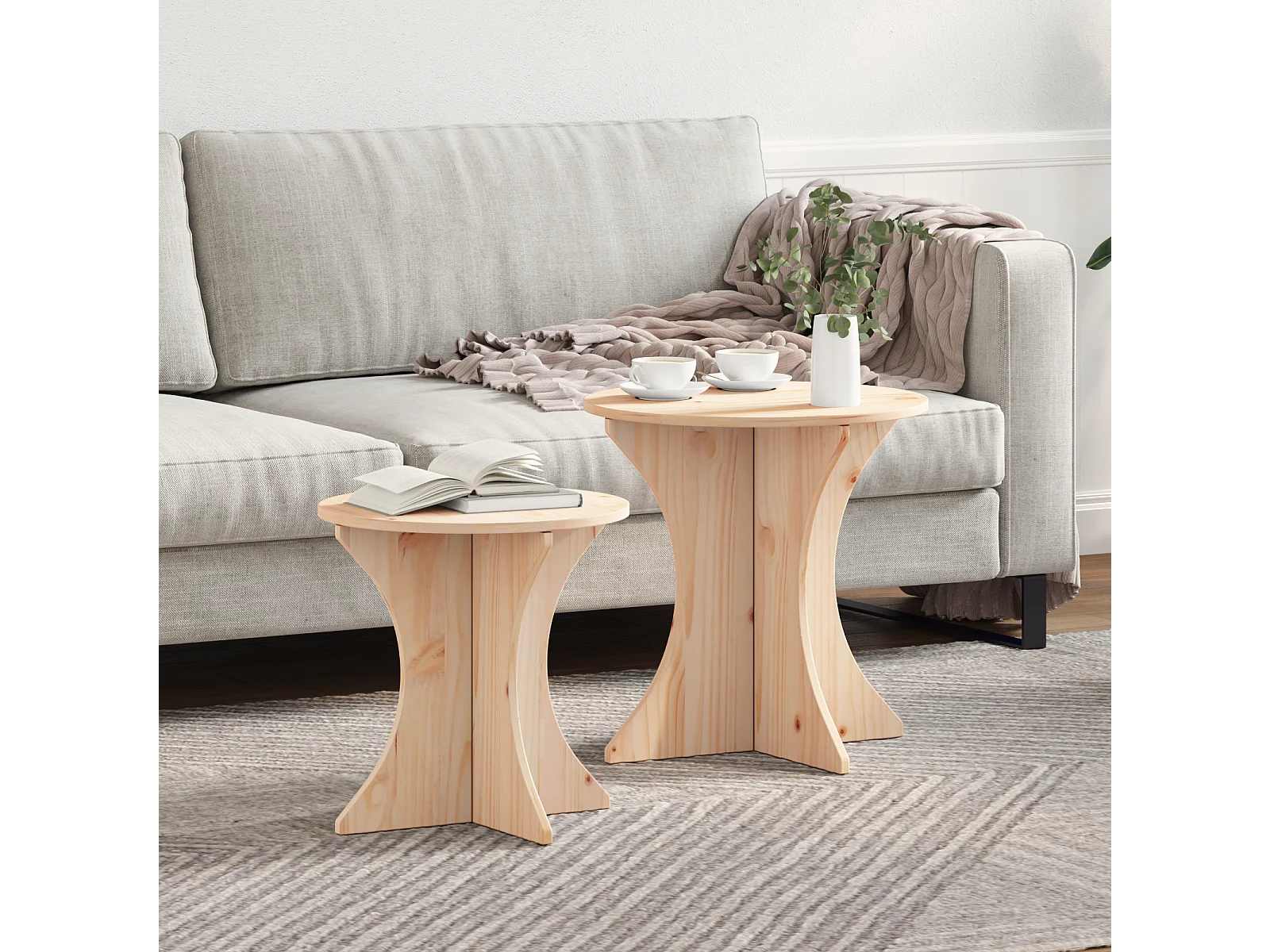 2 pcs Mesas de centro | Mesa de apoio | Mesa de café Natural 46x46x47 cm