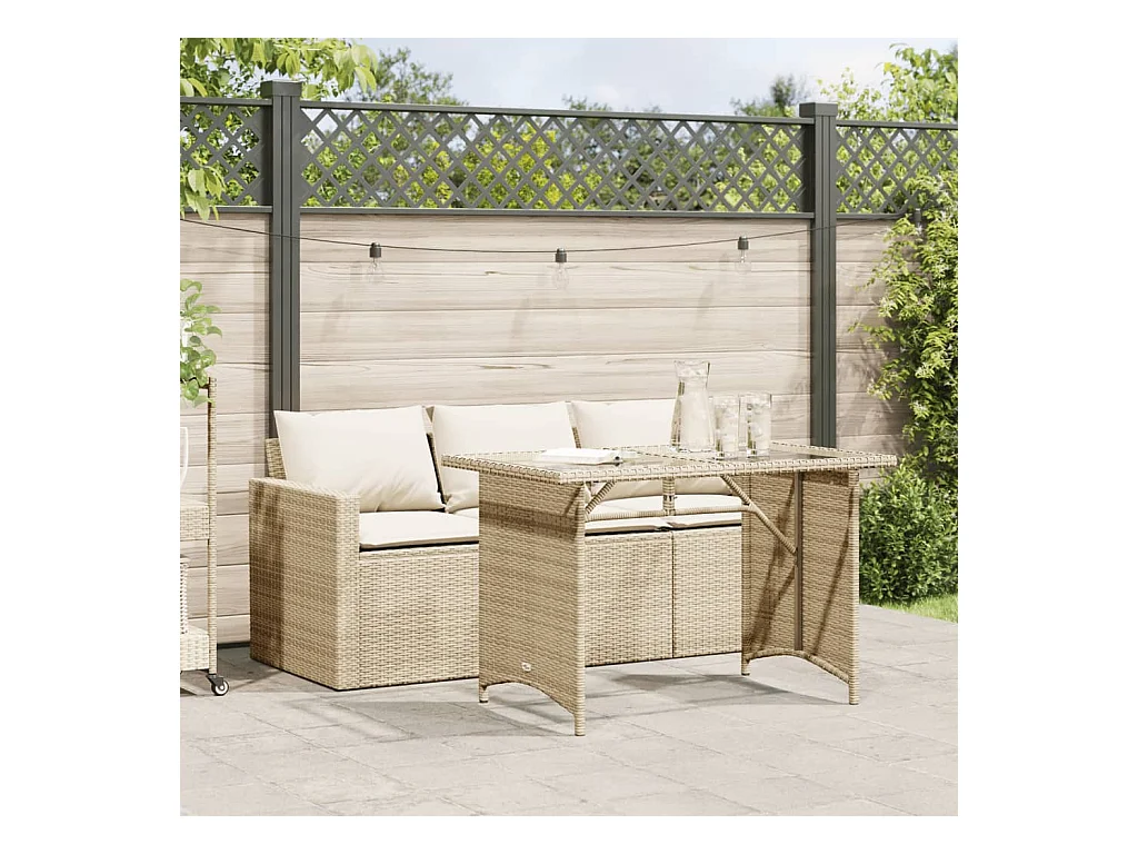 2 peças conjunto de jantar p/ jardim com almofadões vime PE bege