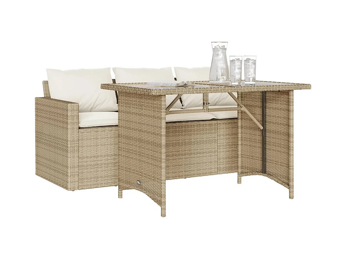 3 pcs conjunto bistrô com almofadões vime PE bege PT181370