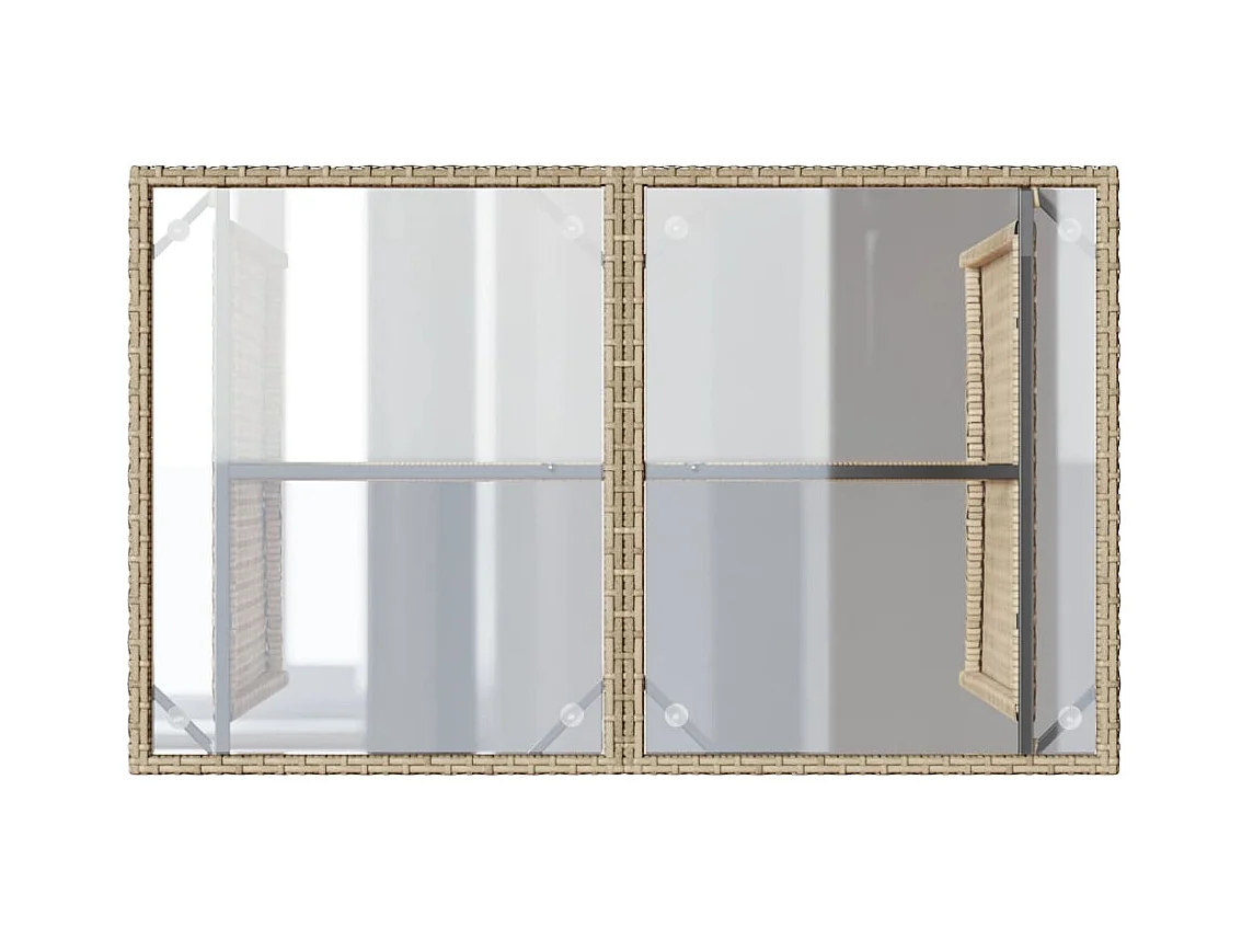 3 pcs conjunto bistrô vime PE e vidro temperado bege PT671862