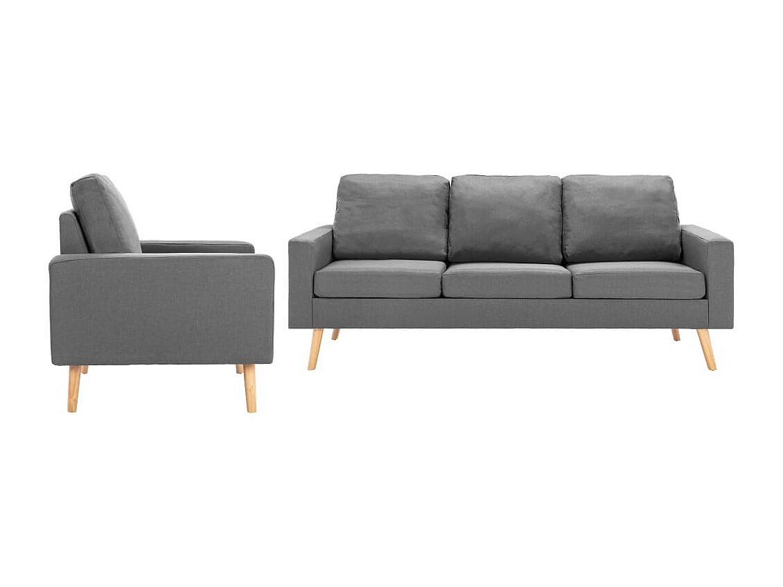 2 pcs conjunto de sofás tecido cinzento-claro