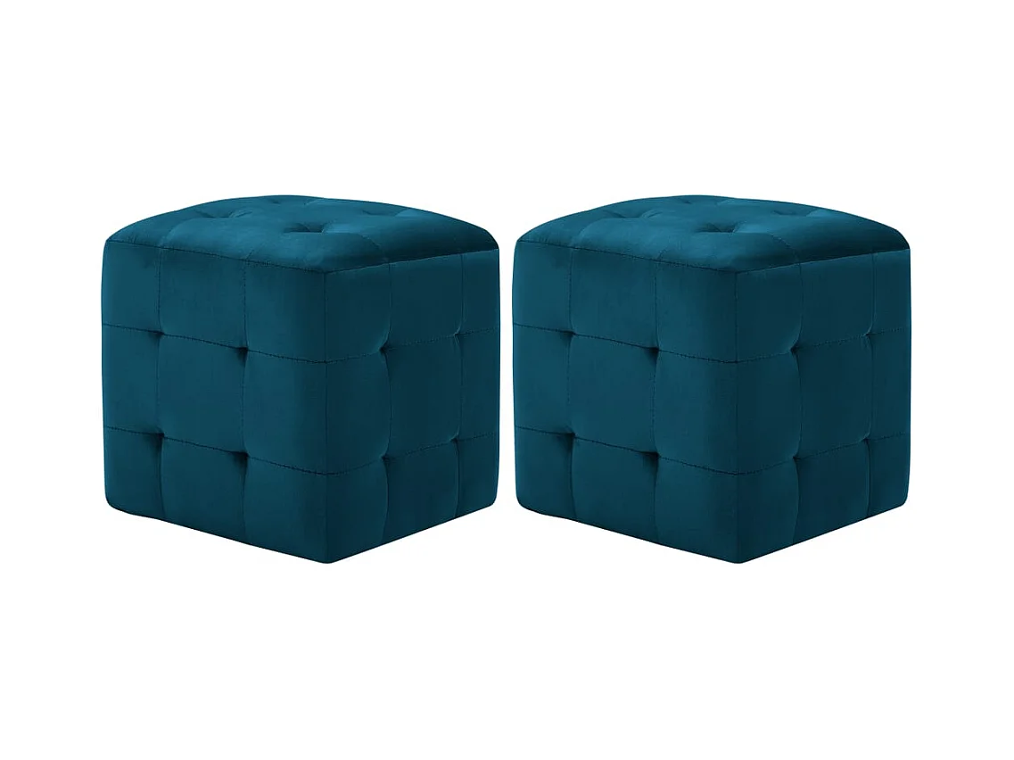 2 unidades Pufes Azul 30 x 30 x 30 cm Tecido Veludo