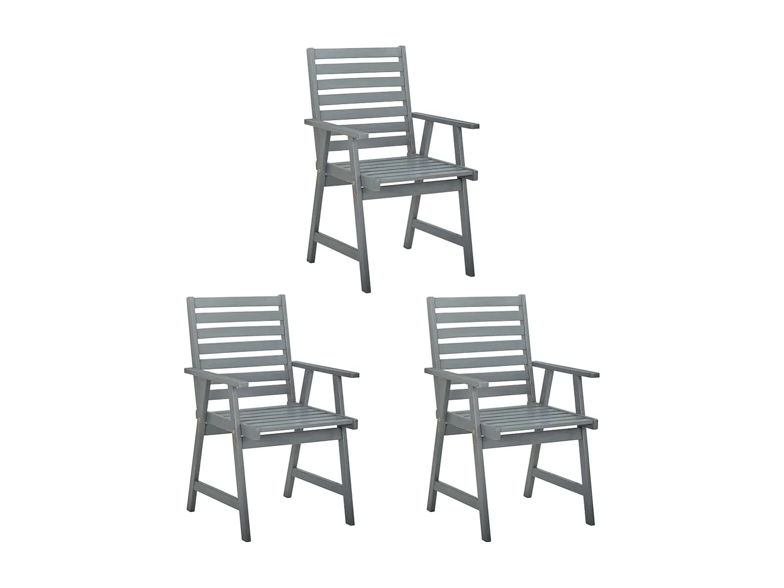 3 cadeiras de jantar ao ar livre com almofadas em acácia maciça