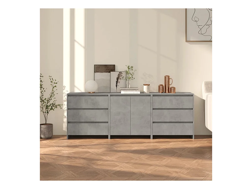 3 pcs aparador em madeira processada cinzento cimento PT848354