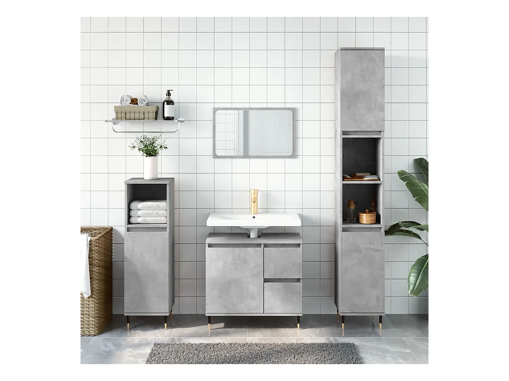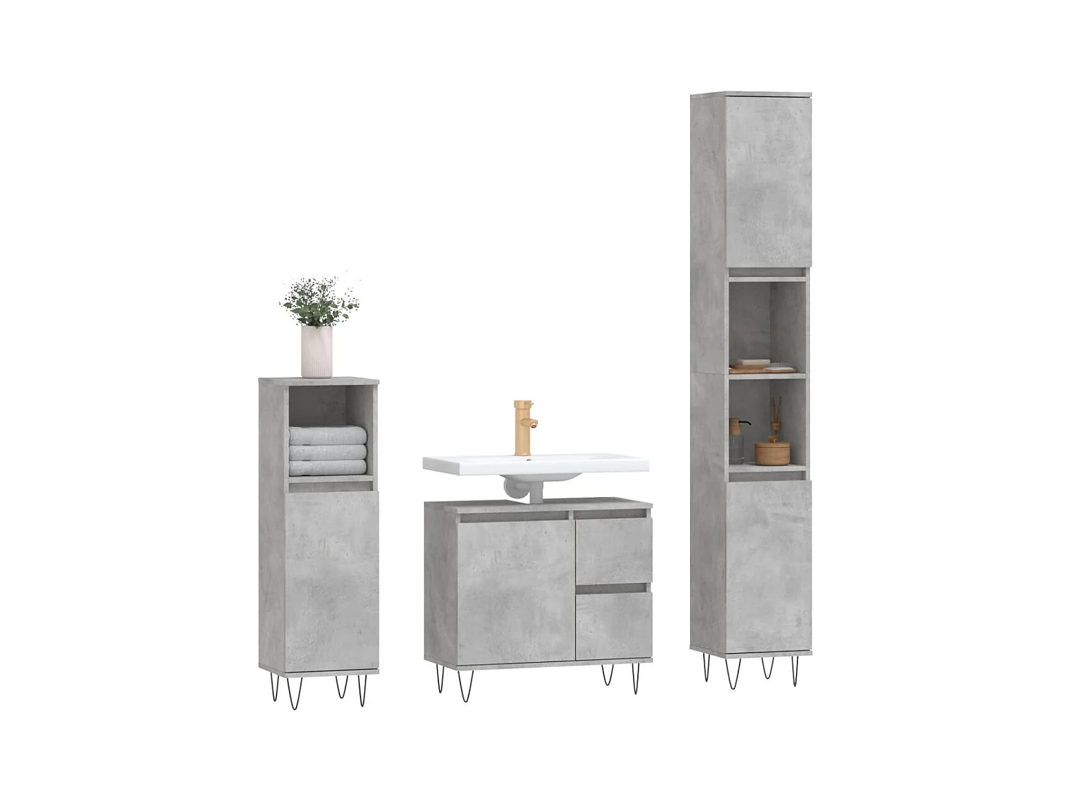 3 pcs conj. móveis casa banho derivados madeira cinza cimento PT387014