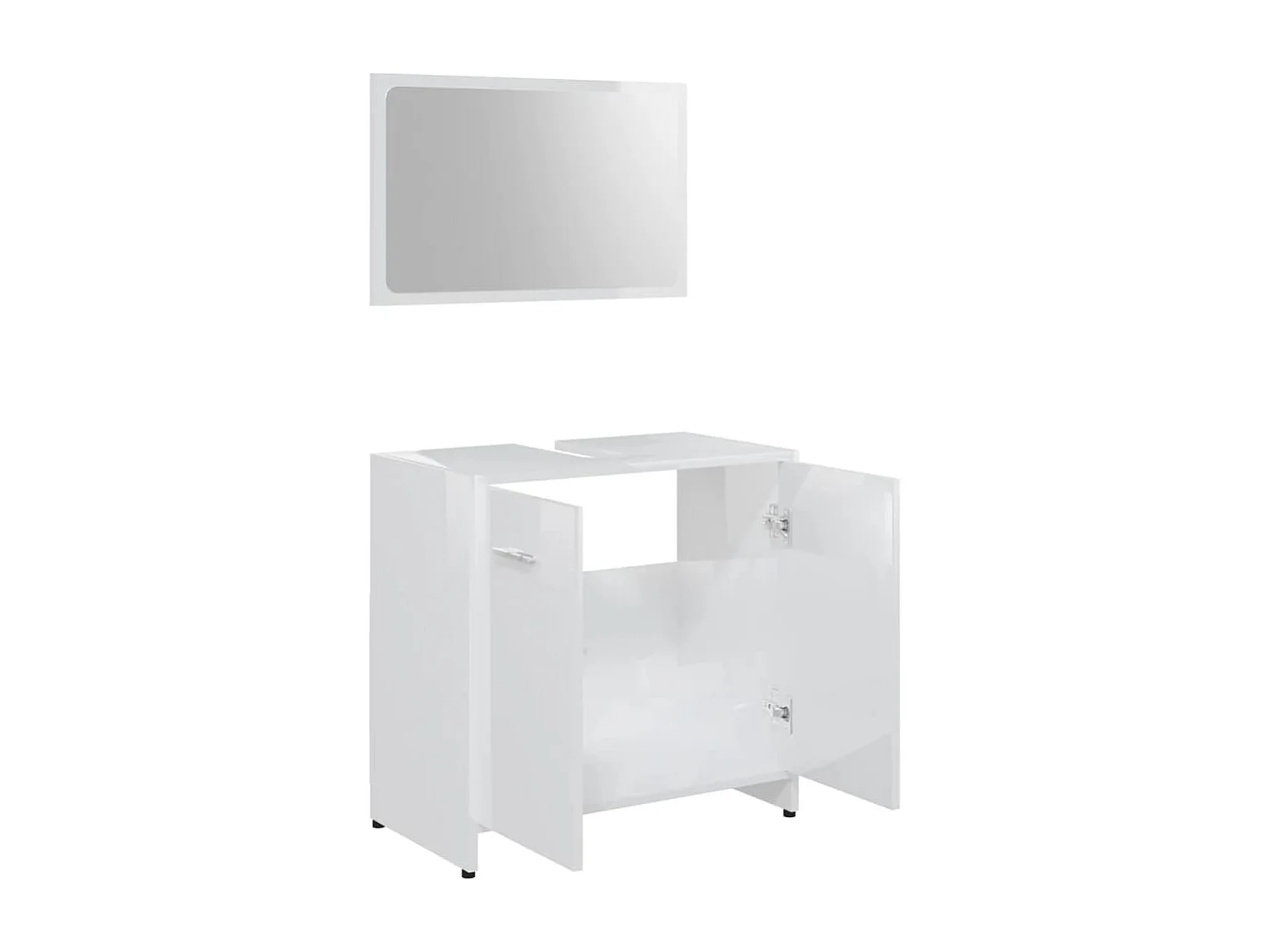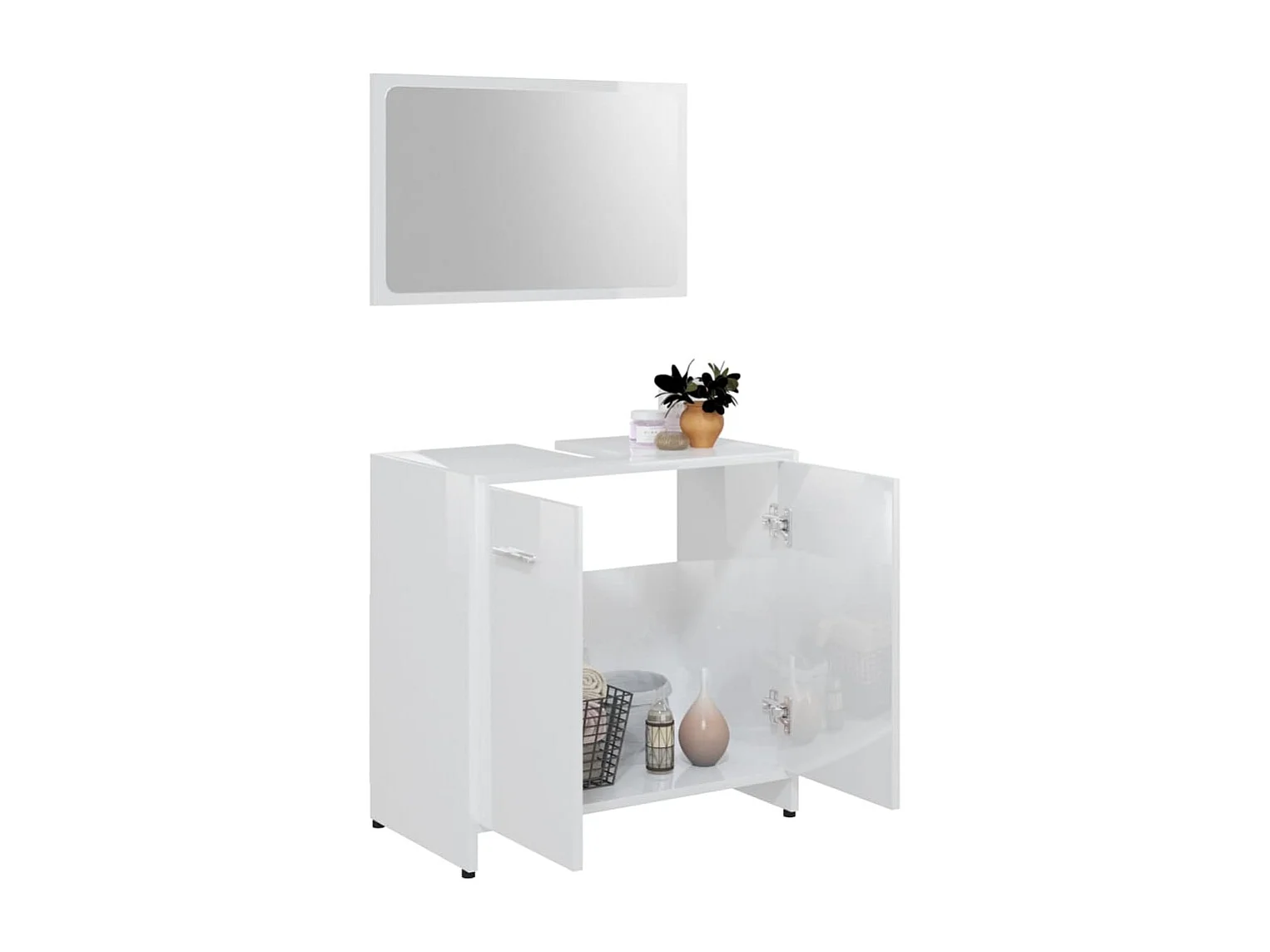 3 pcs conj. móveis casa de banho contraplacado branco brilhante