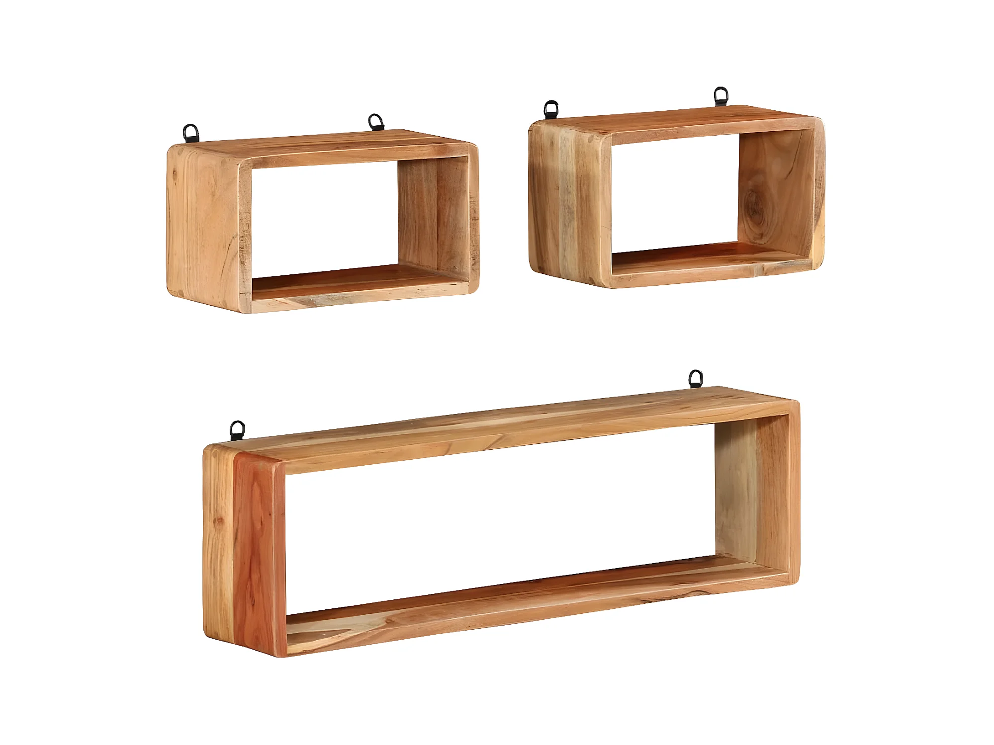 3 pcs conj. prateleiras parede cúbicas madeira de acácia maciça PT224219