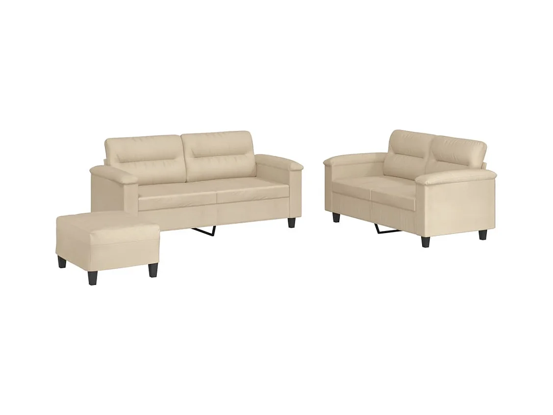 Conjunto de sofá de 3 peças com almofadas em tecido de microfibra creme