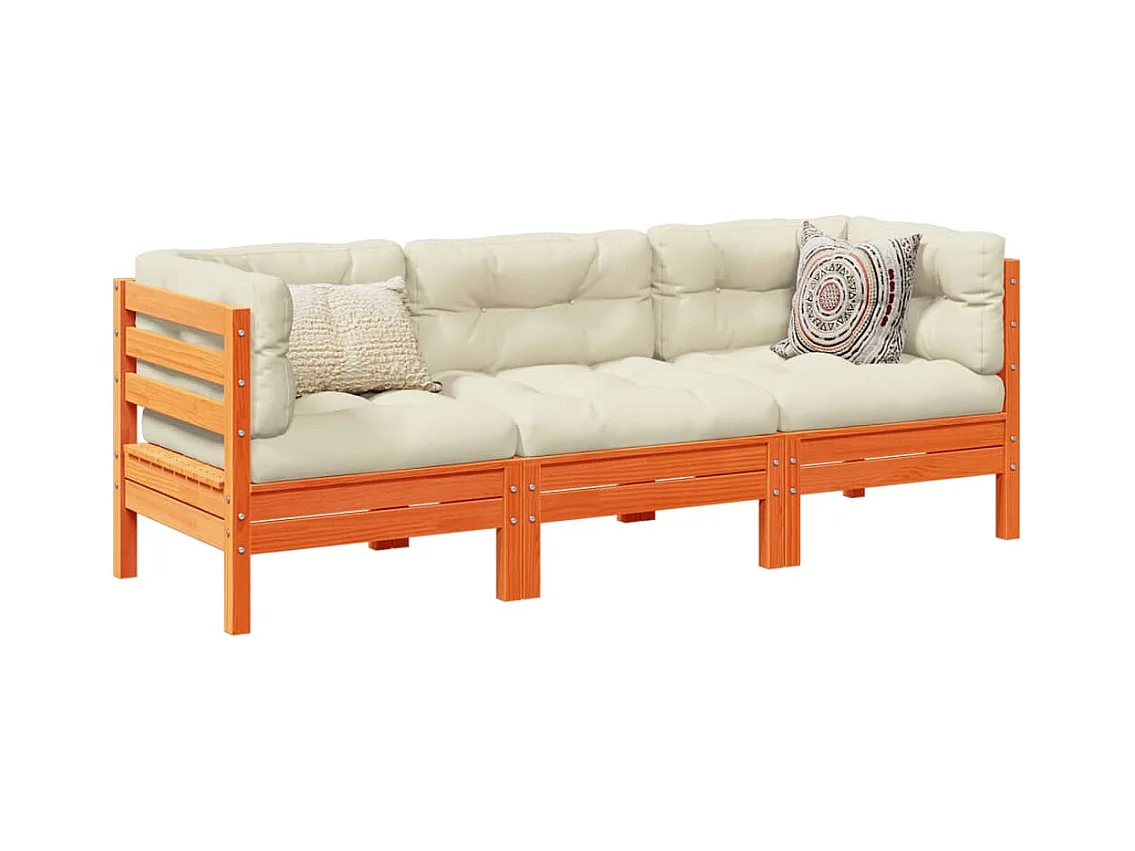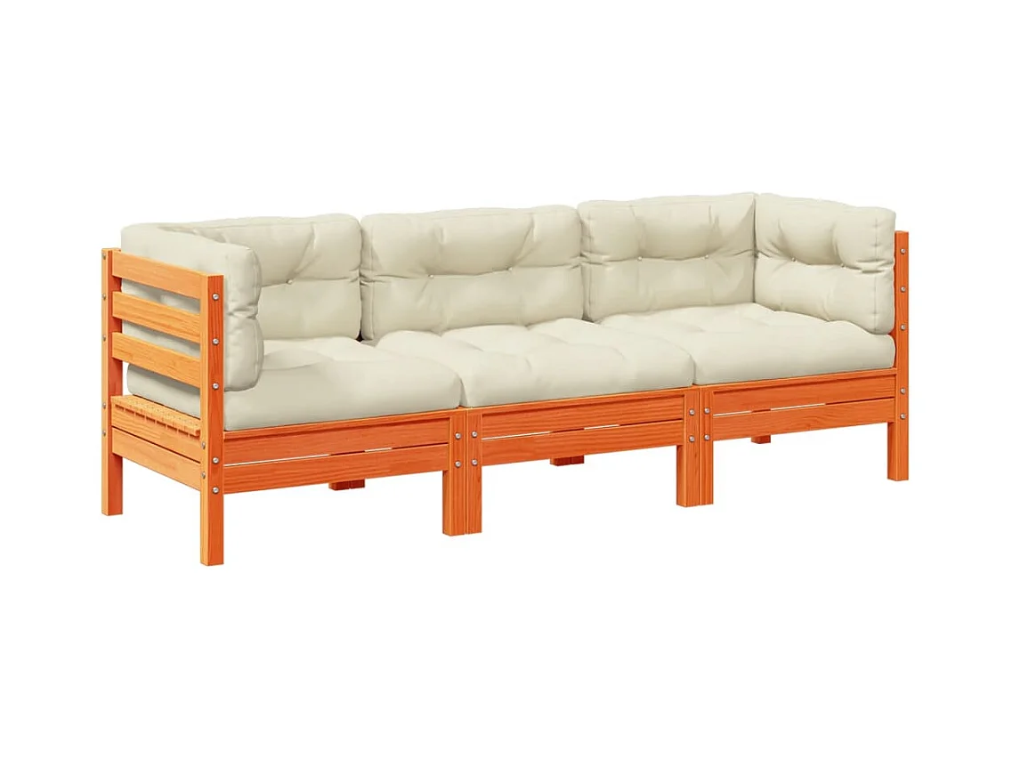 3 pcs conj. sofás jardim almofadões pinho maciço castanho cera