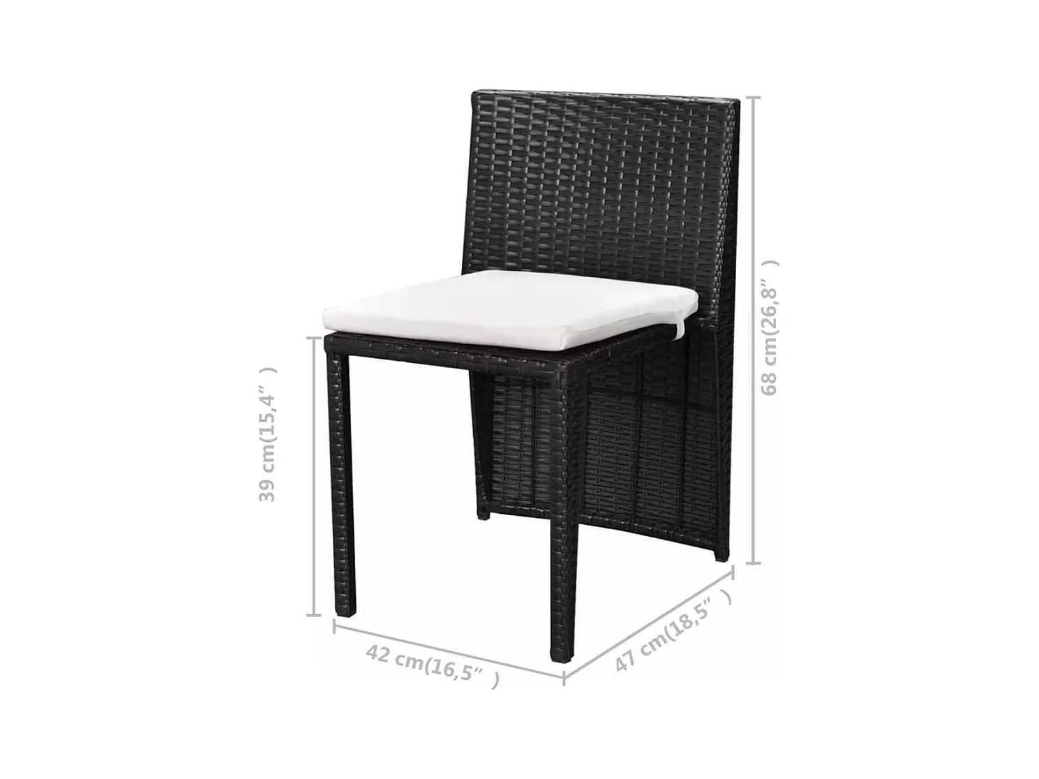 3 pcs conjunto bistrô com almofadas vime PE preto