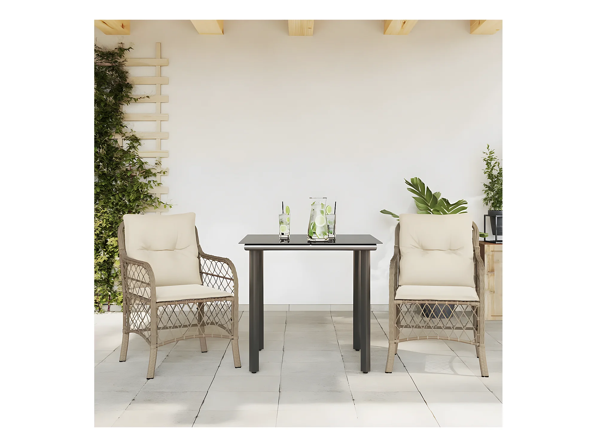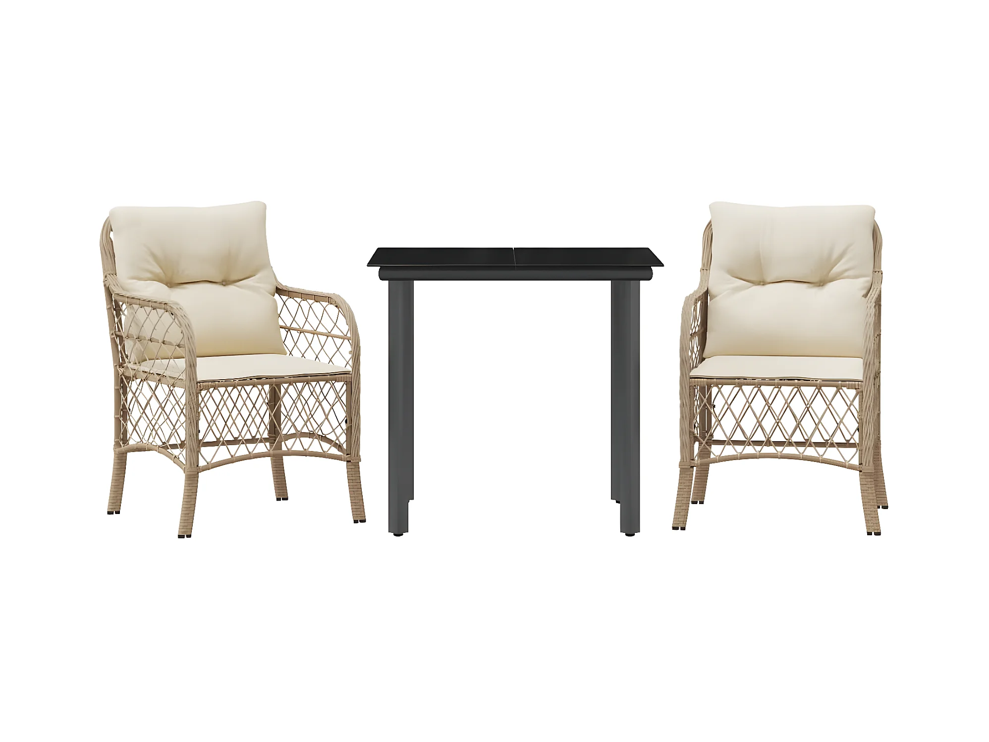 3 pcs conjunto bistrô com almofadões vime PE bege misturado PT619885