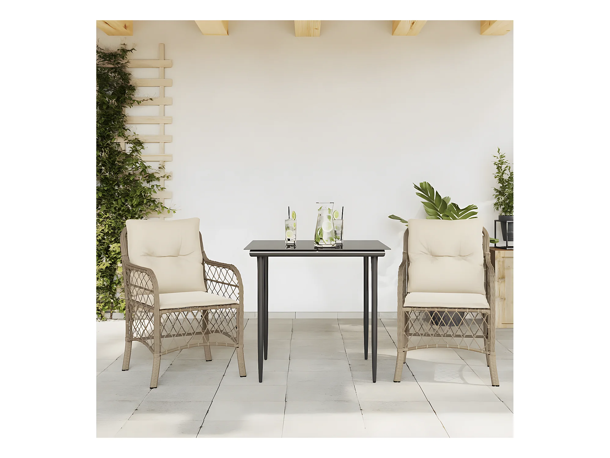 3 pcs conjunto bistrô vime PE e vidro temperado bege PT671862