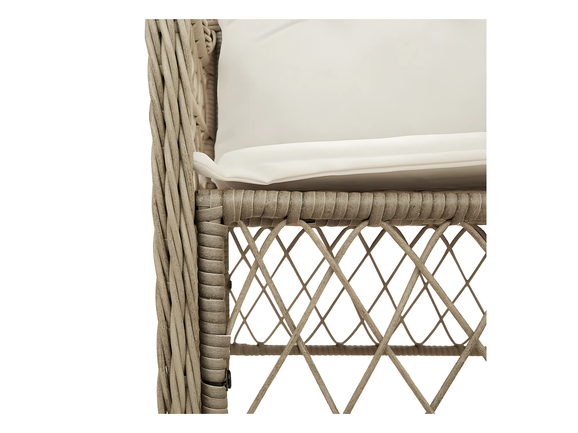 2 peças conjunto de jantar p/ jardim com almofadões vime PE bege