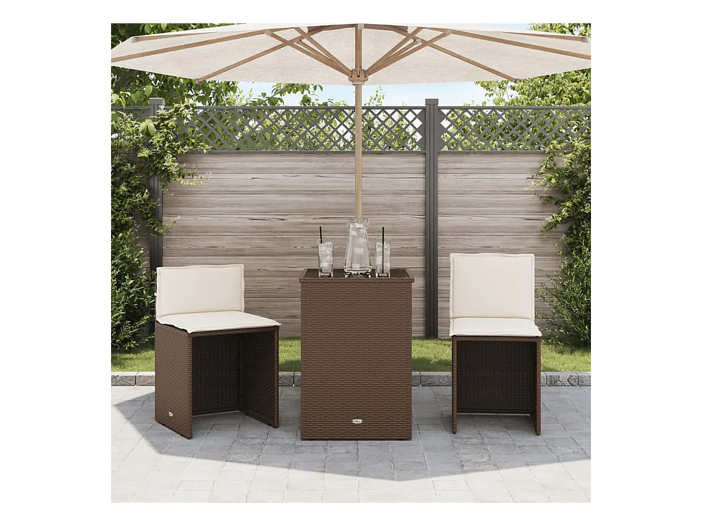 3 pcs conjunto bistrô com almofadões vime PE castanho PT531962