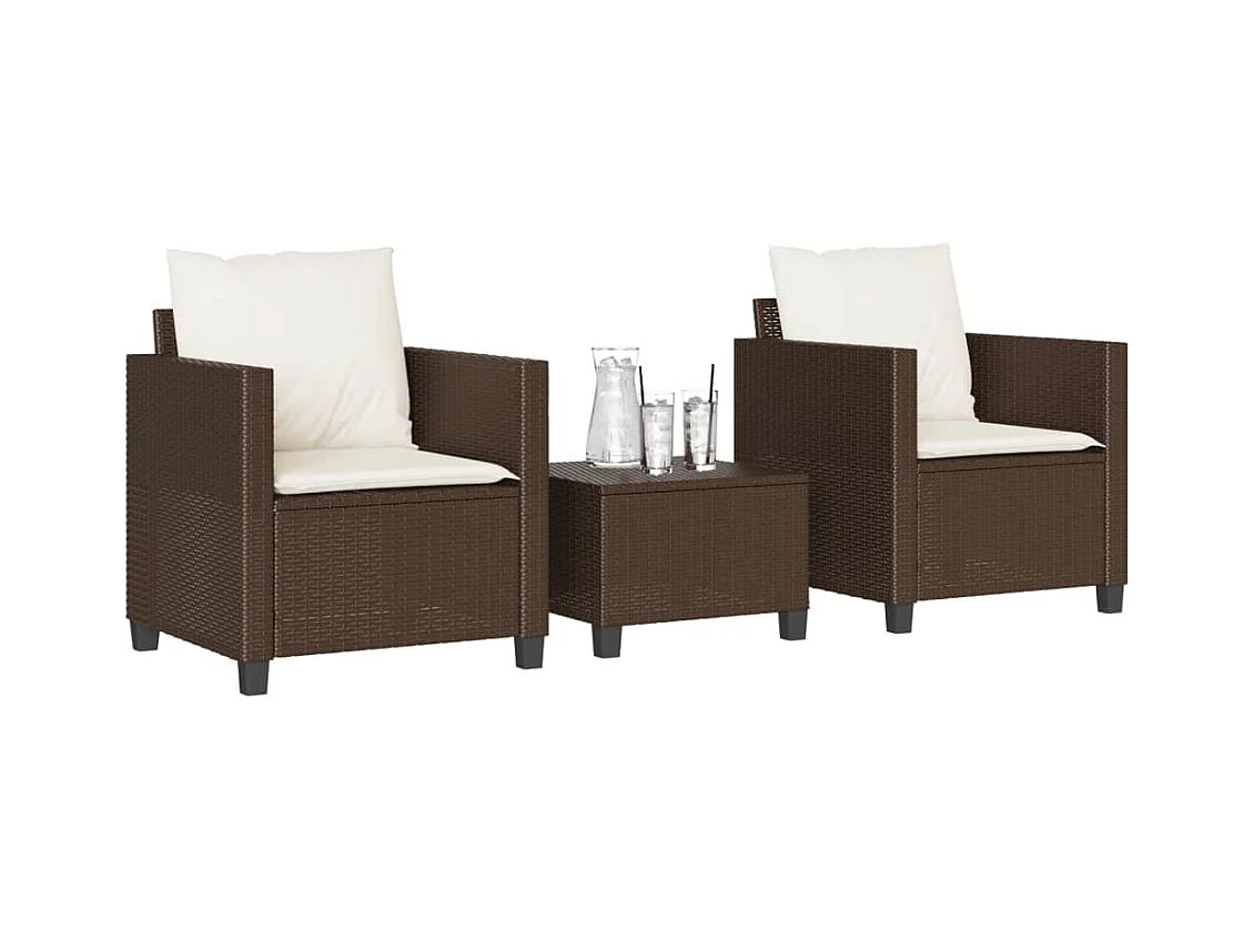 3 pcs conjunto bistrô com almofadões vime PE castanho PT836715