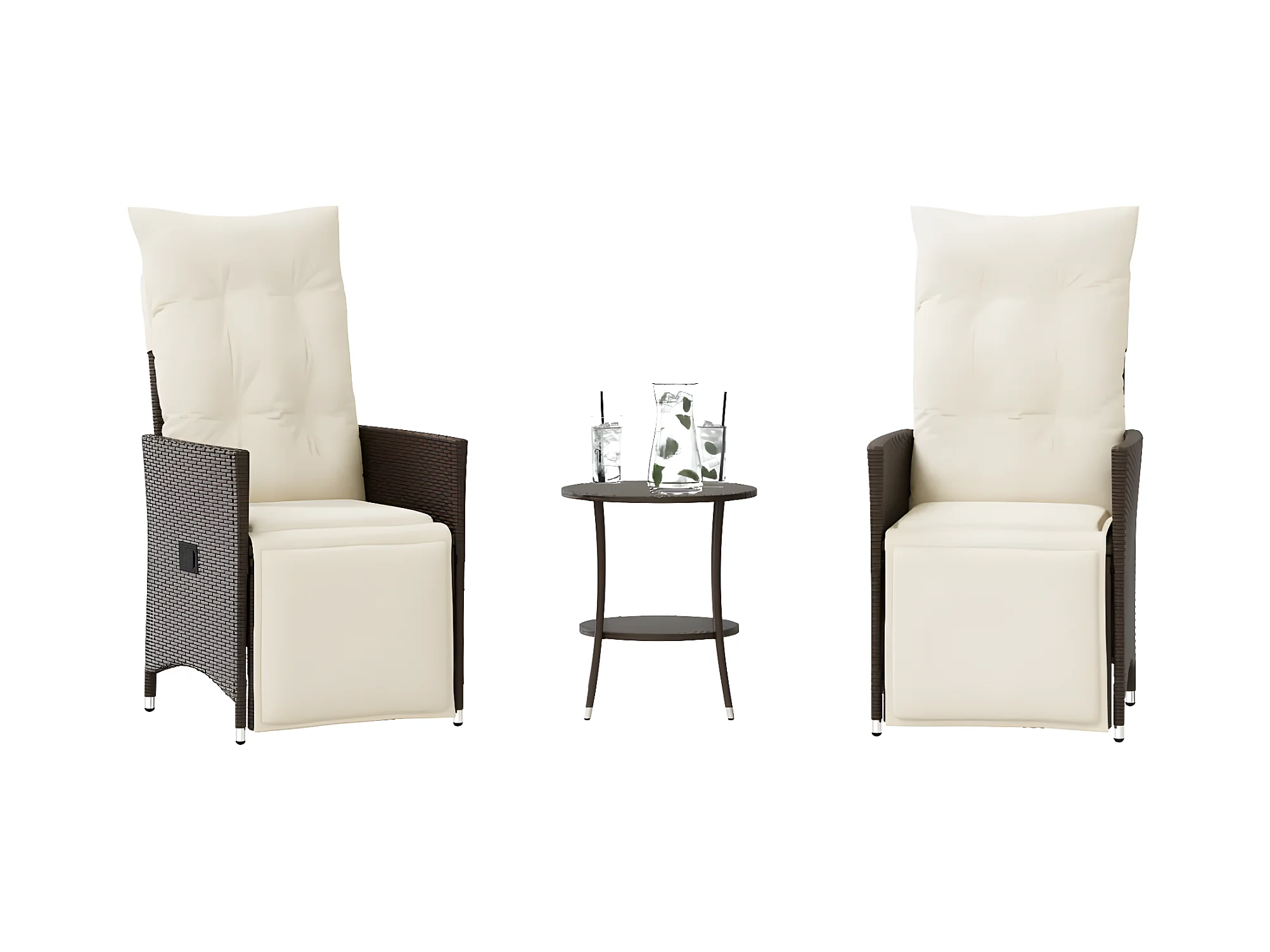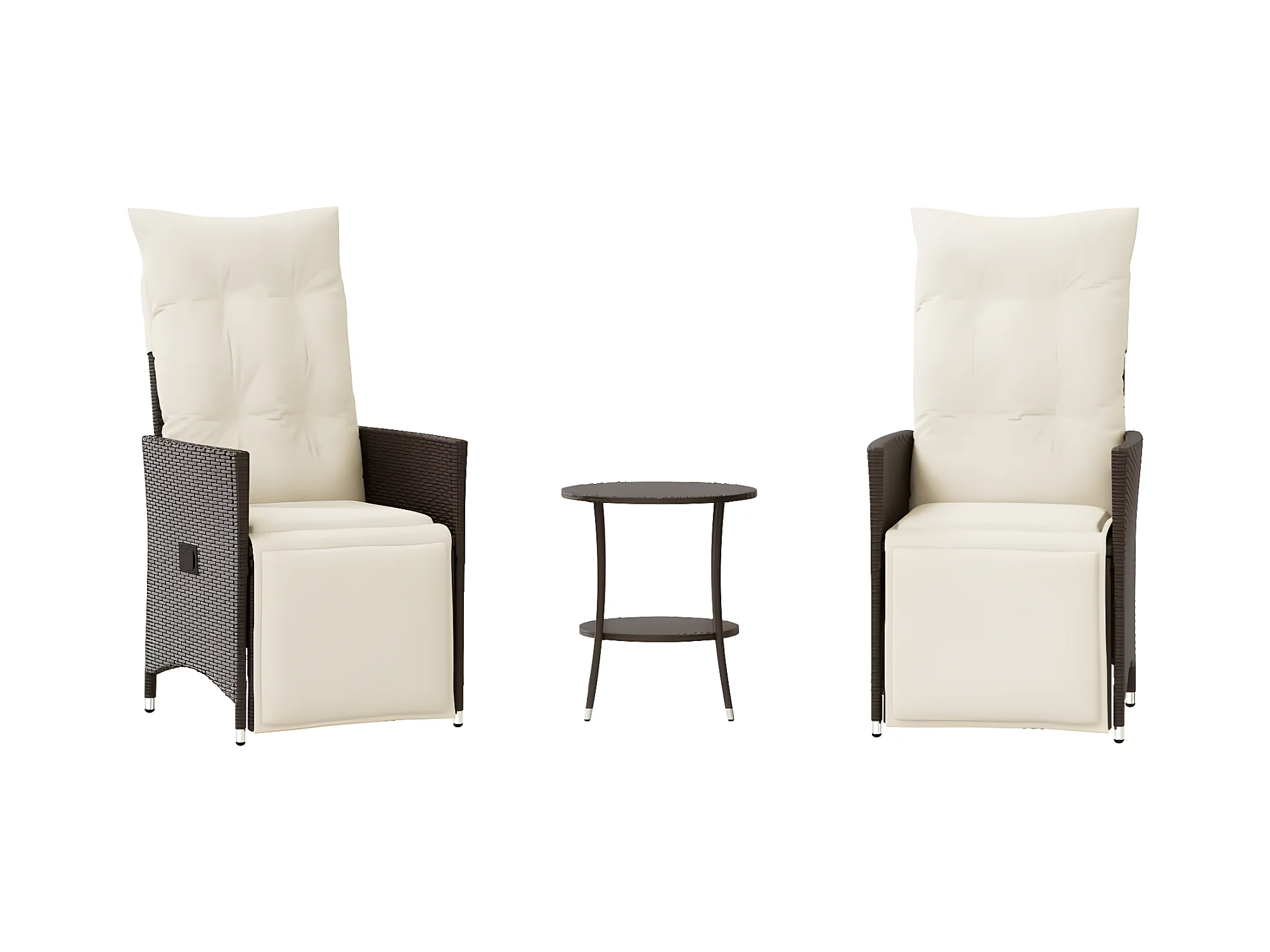 3 pcs conjunto bistrô com almofadões vime PE castanho PT531962