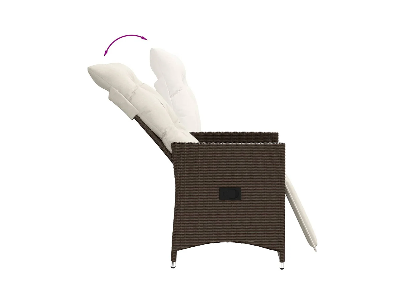 3 pcs conjunto bistrô com almofadões vime PE castanho PT876698