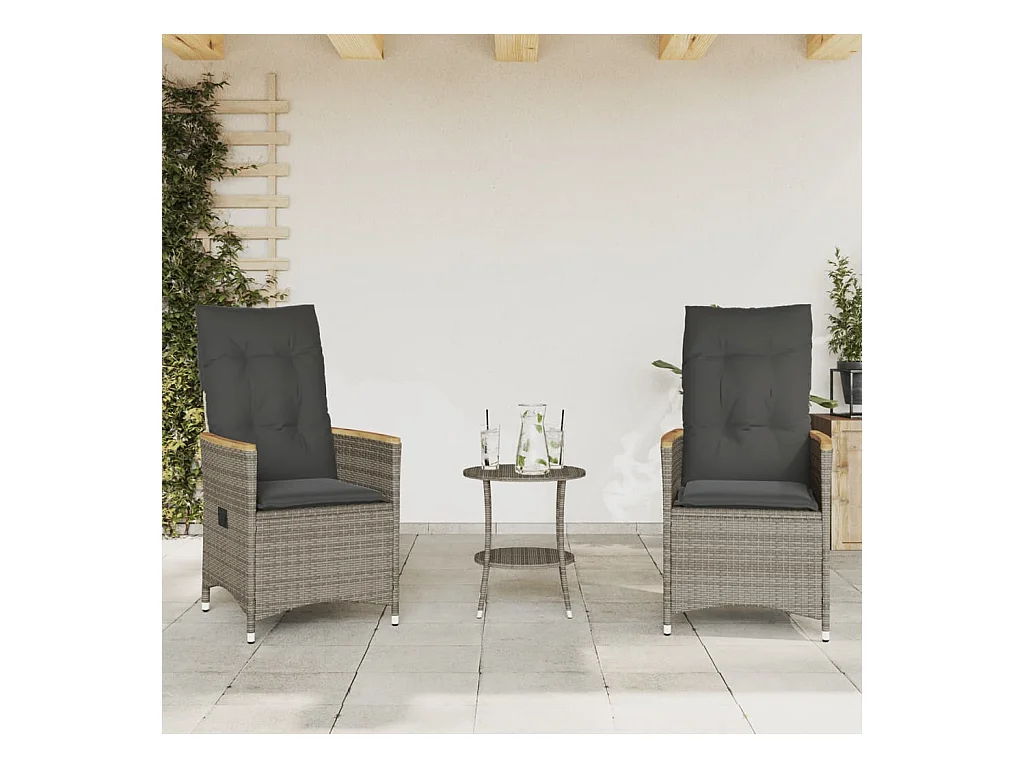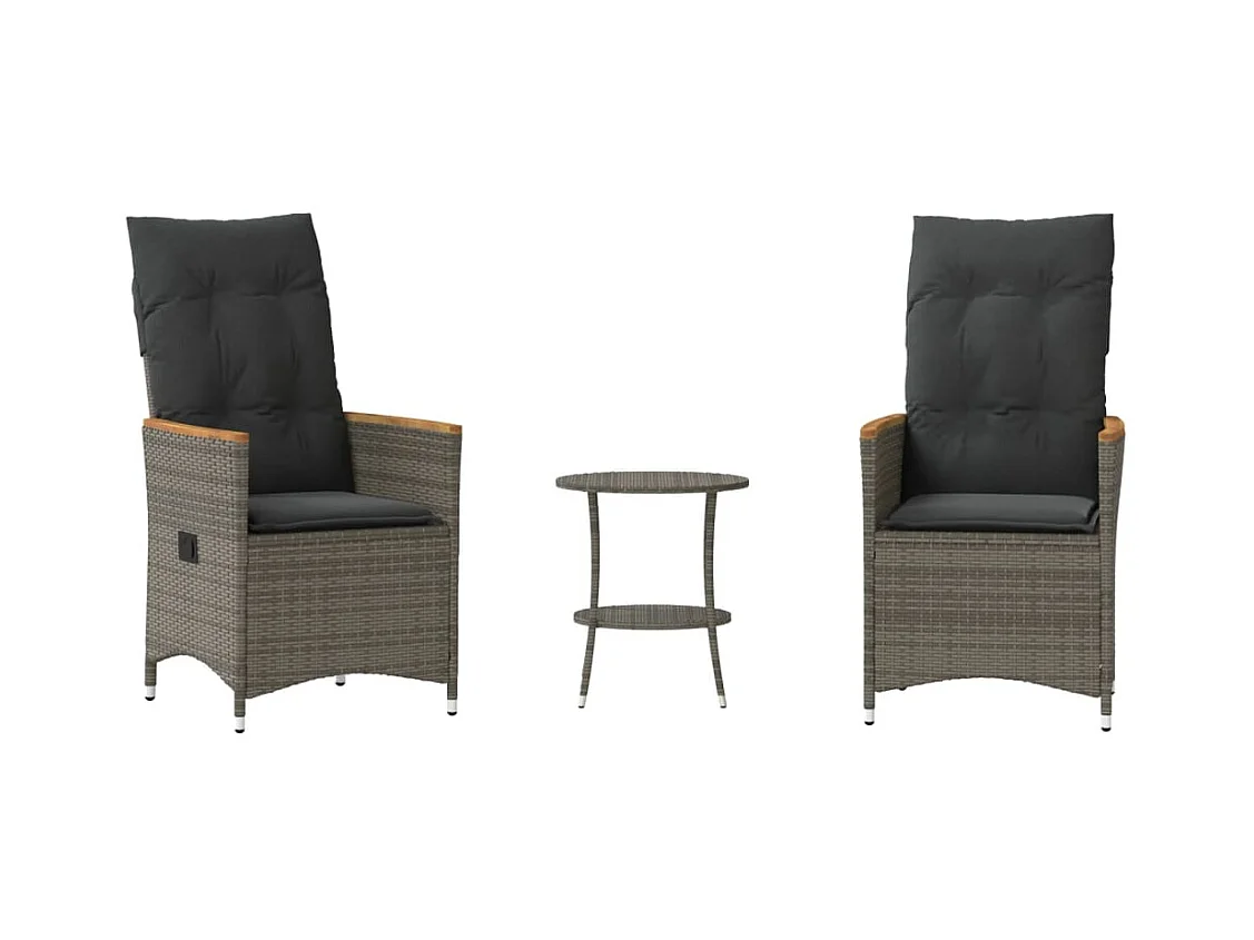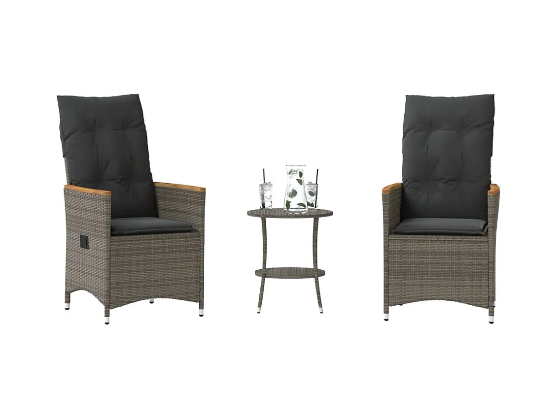 Conjunto de bistrô com almofadões 3 pcs vime PE e acácia cinza PT929203