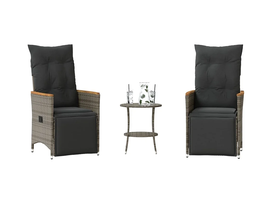 3 pcs conjunto bistrô com almofadões vime PE cinza PT204927
