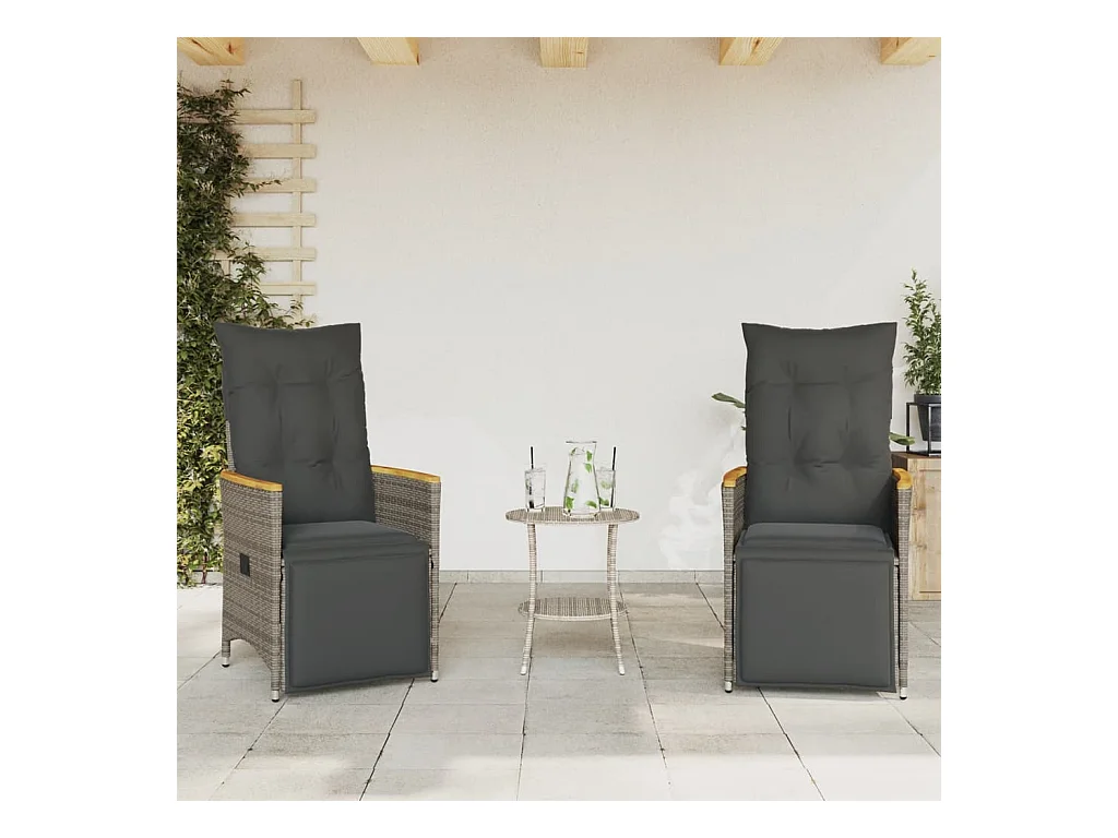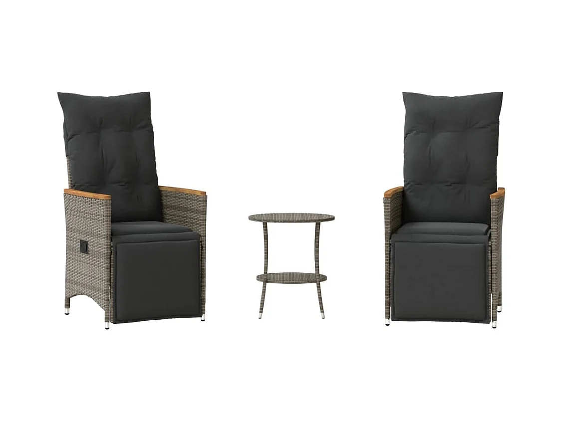 Conjunto de bistrô com almofadões 3 pcs vime PE e acácia cinza PT929203