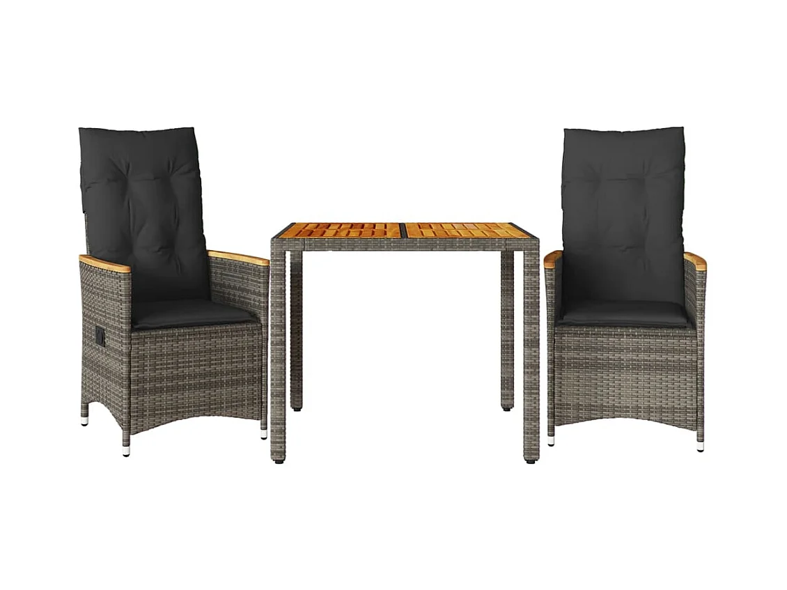 Conjunto de bistrô com almofadões 3 pcs vime PE e acácia cinza PT929203