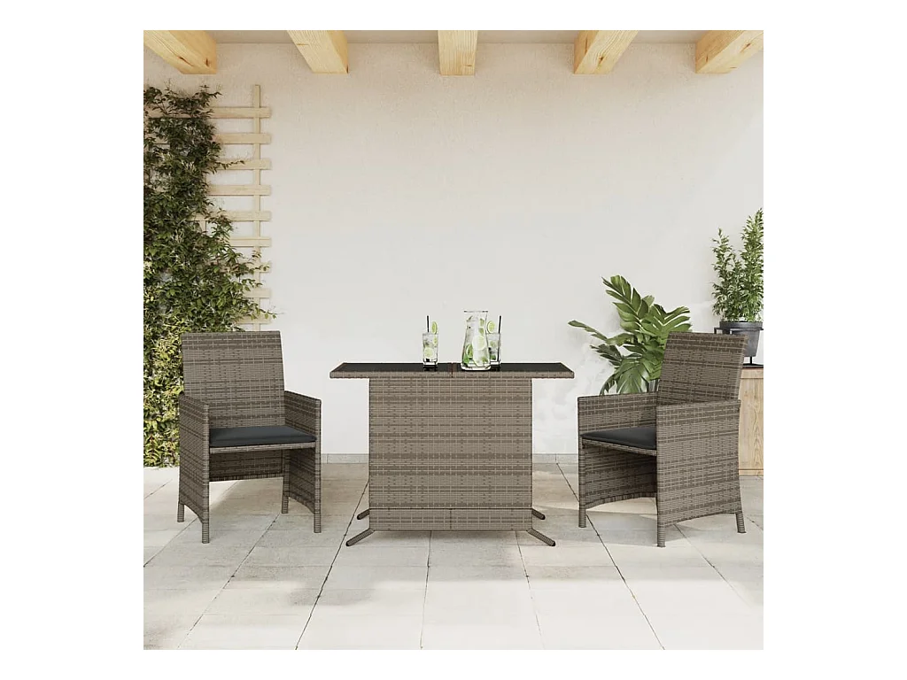 3 pcs conjunto bistrô com almofadões vime PE cinza PT798374