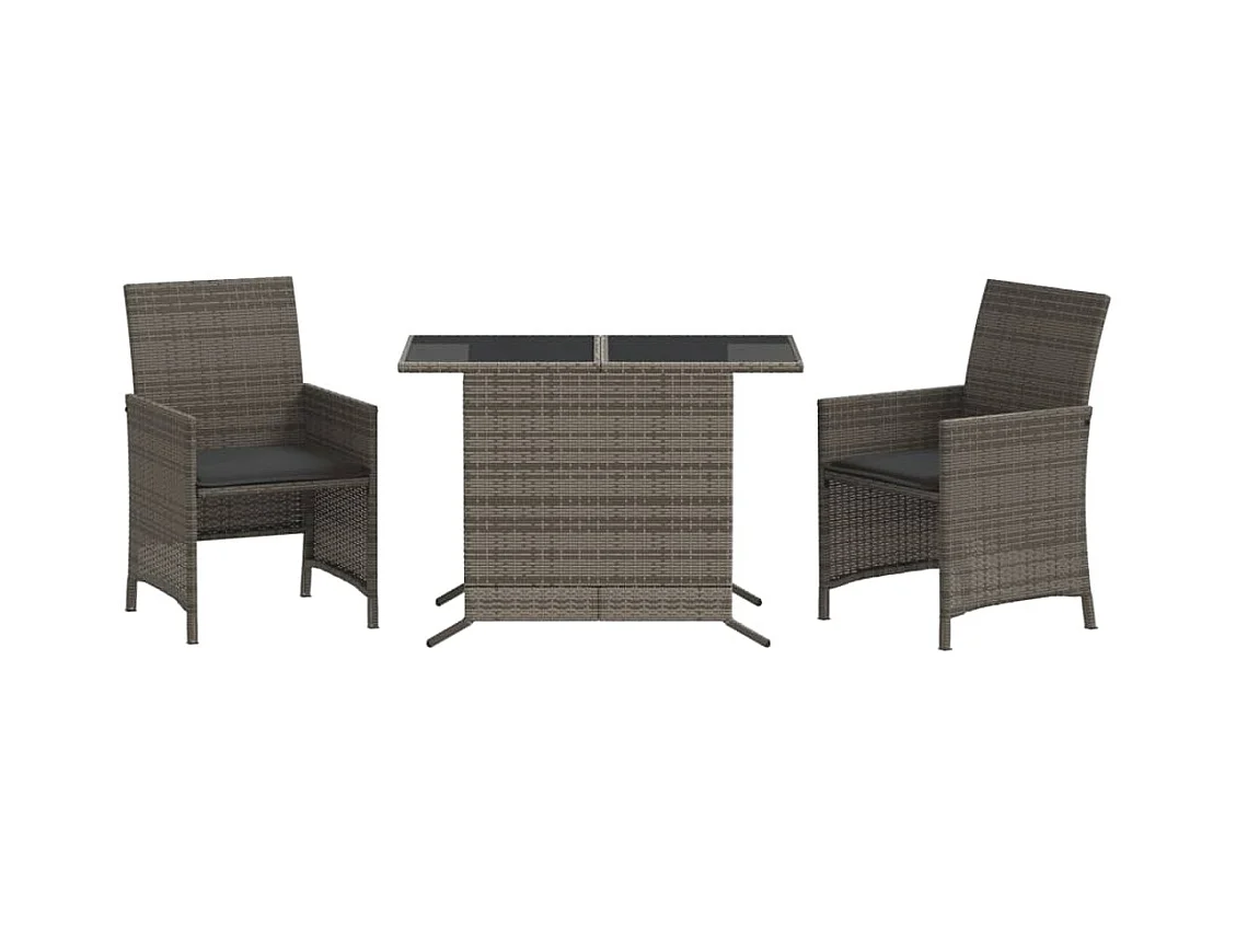 3 pcs conjunto bistrô com almofadões vime PE cinza PT933764
