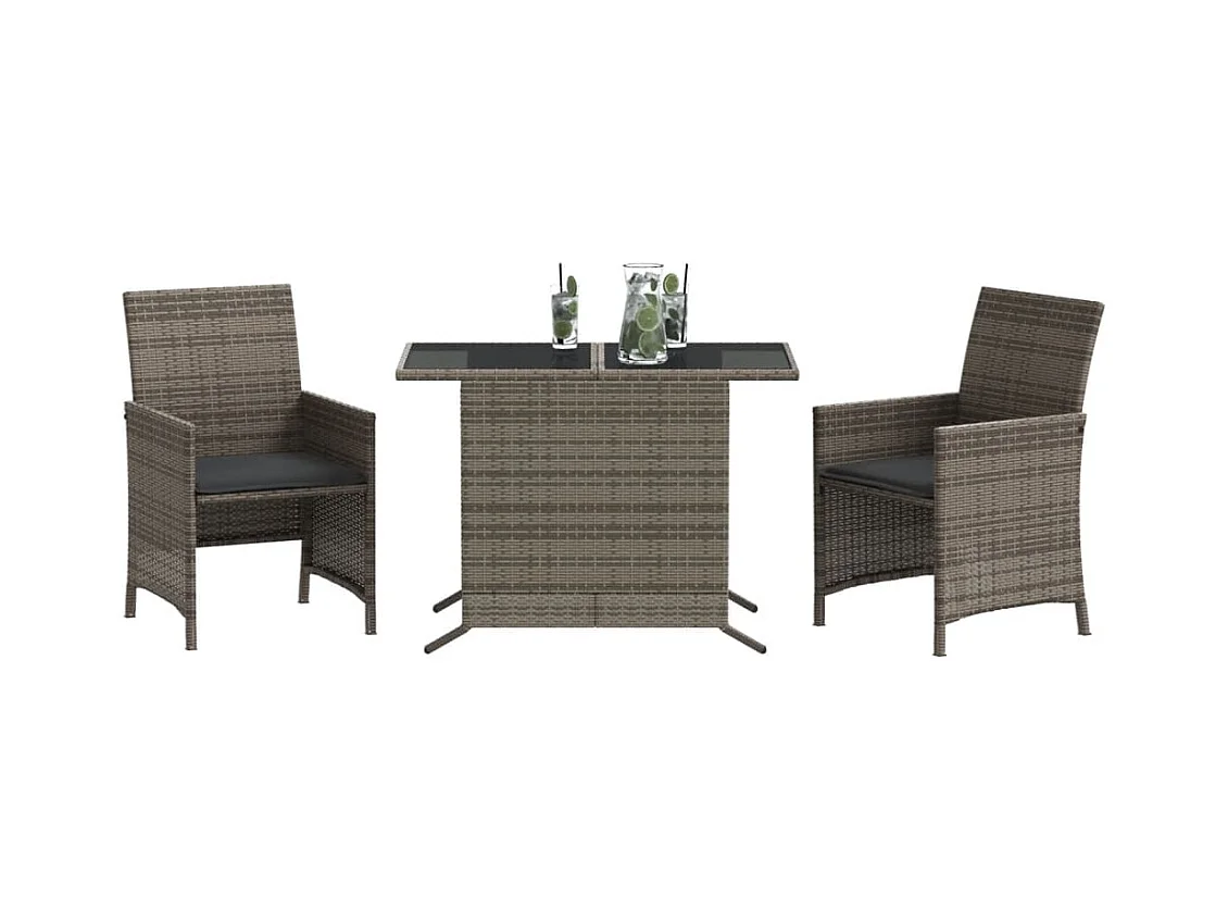 3 pcs conjunto bistrô com almofadões vime PE cinza PT262079
