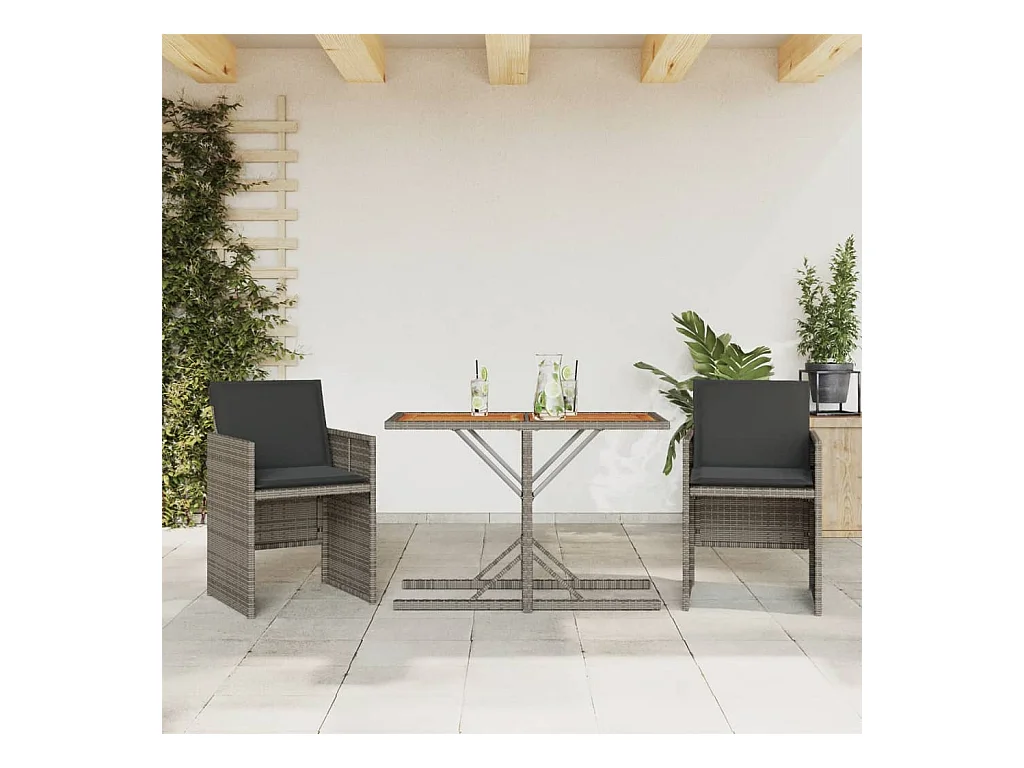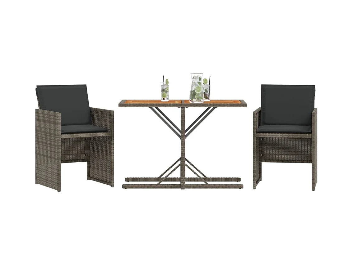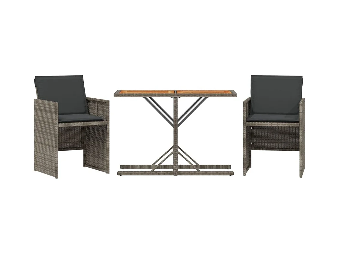 Conjunto de bistrô com almofadões 3 pcs vime PE e acácia cinza PT929203