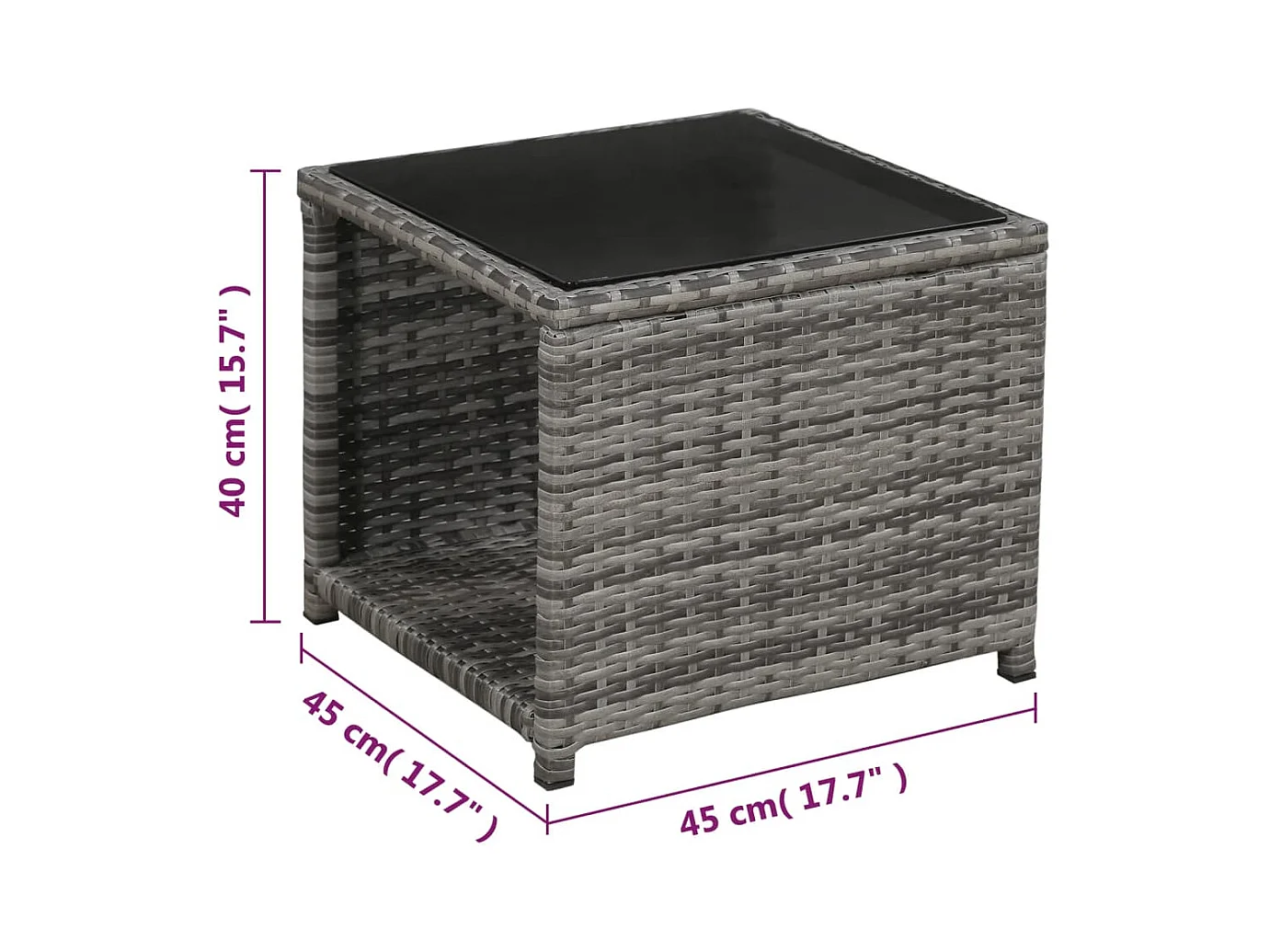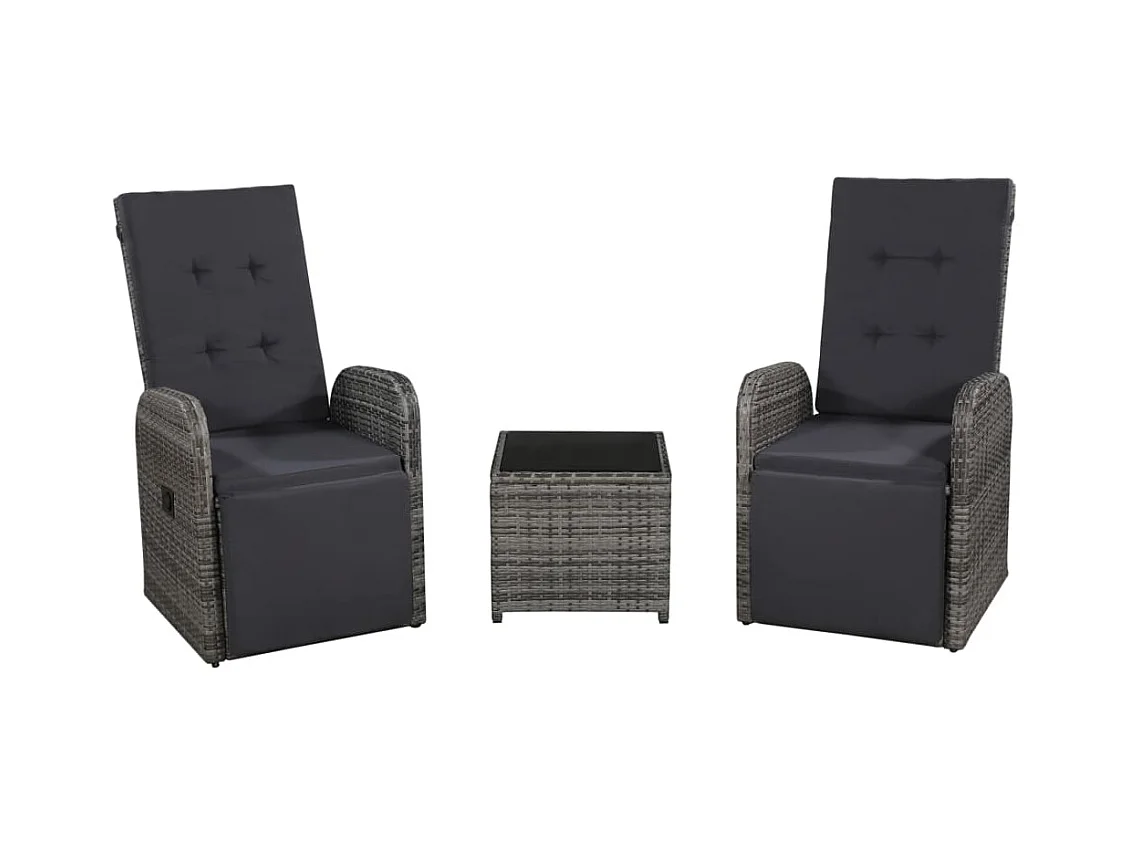 3 pcs conjunto bistrô com almofadões vime PE cinzento