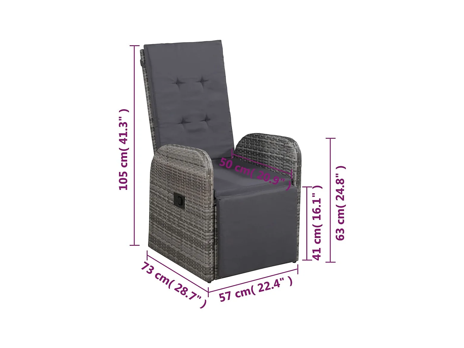 2 pcs conjunto lounge de jardim c/ almofadões vime PE cinzento