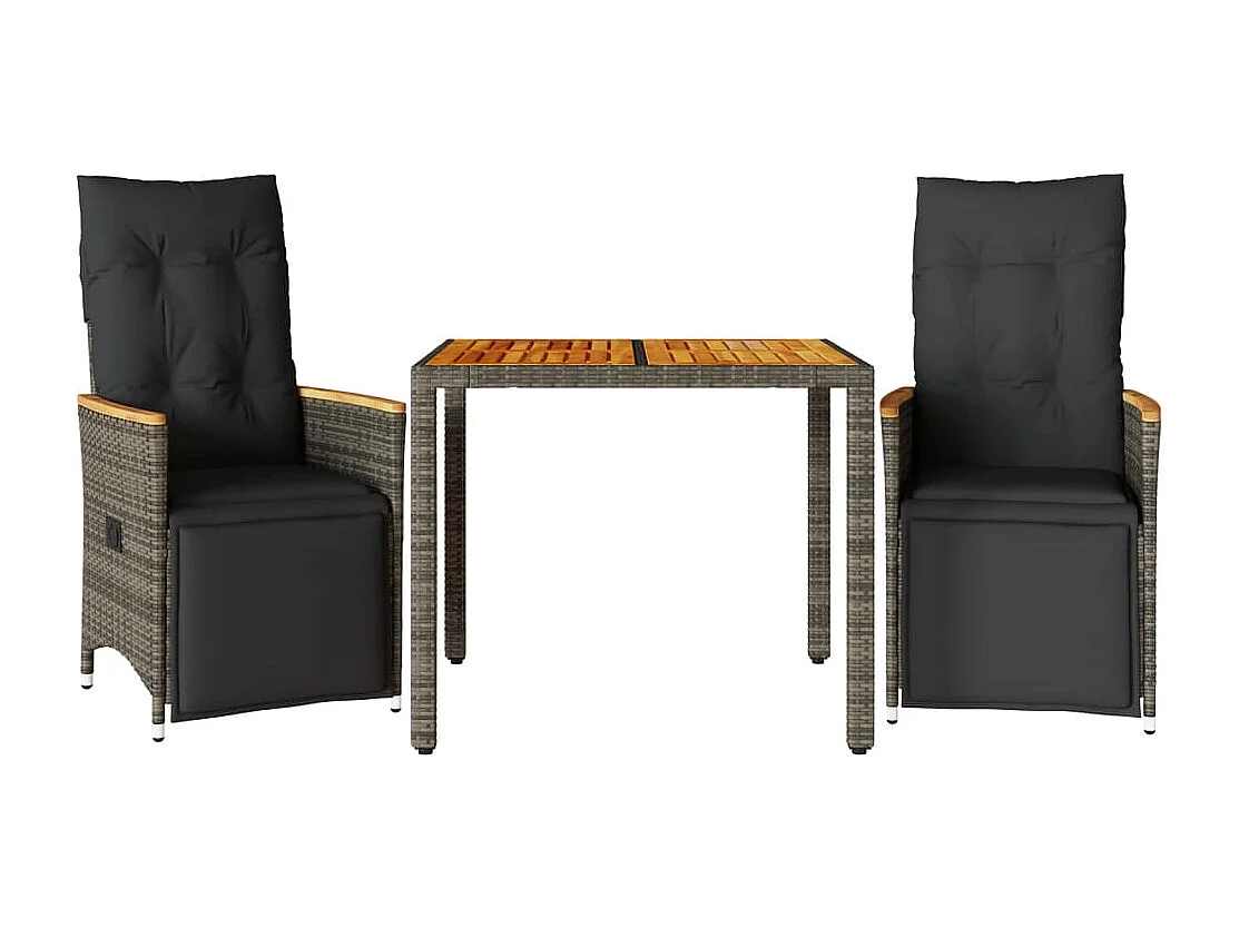 3 pcs conjunto jantar jardim c/ almofadões vime PE/acácia cinza PT615194