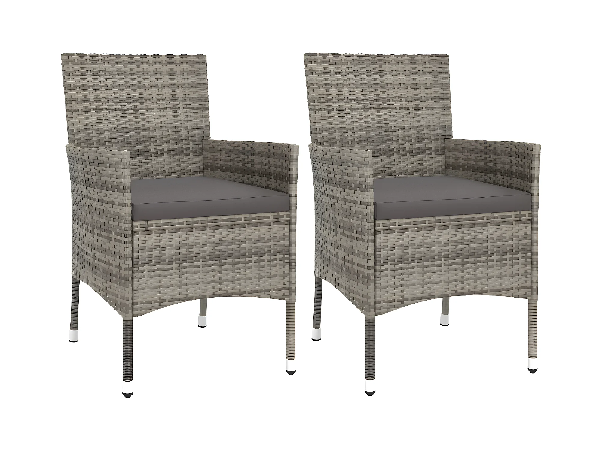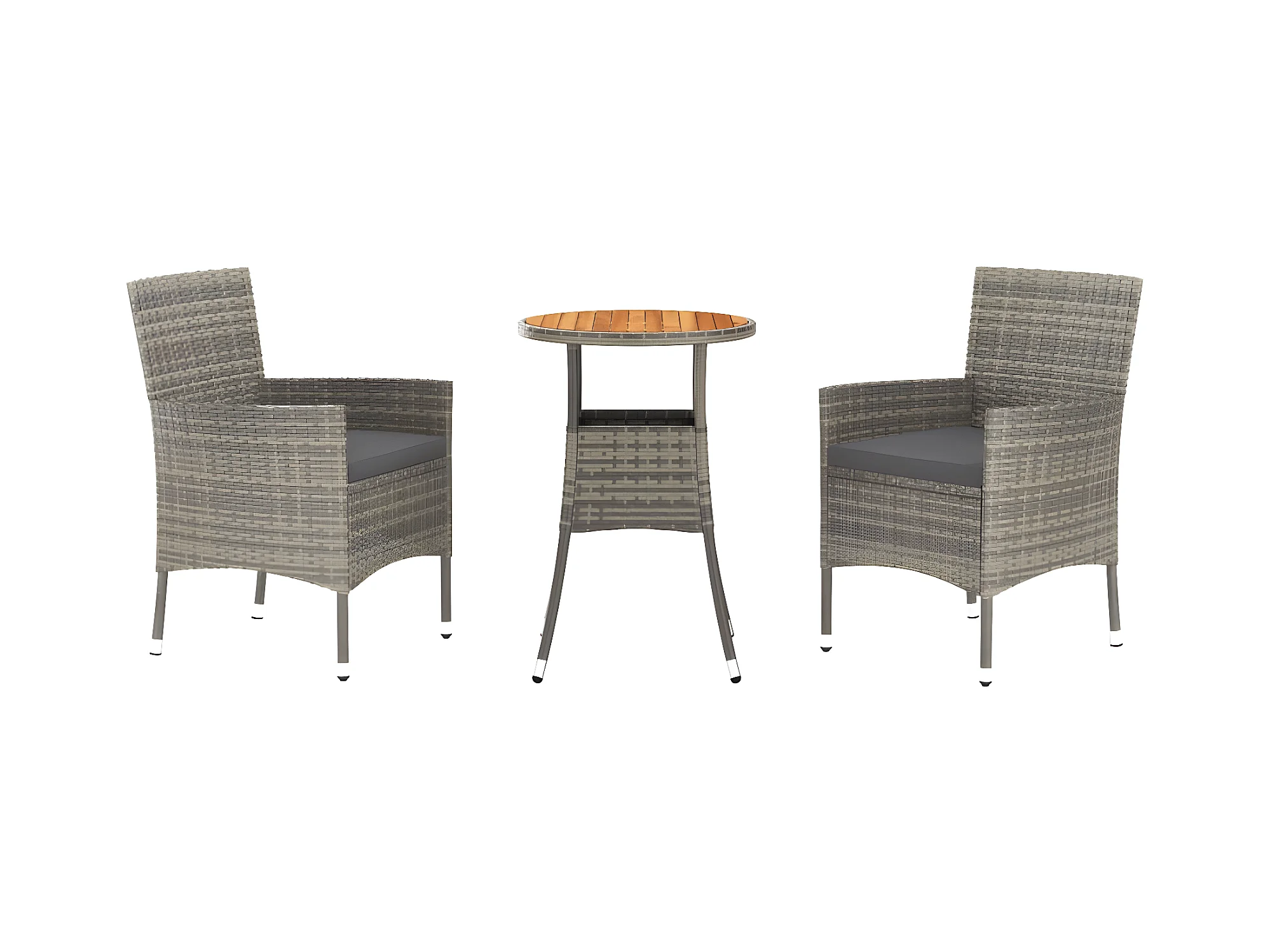 3 pcs conjunto bistrô de jardim c/ almofadões vime PE cinza PT347335