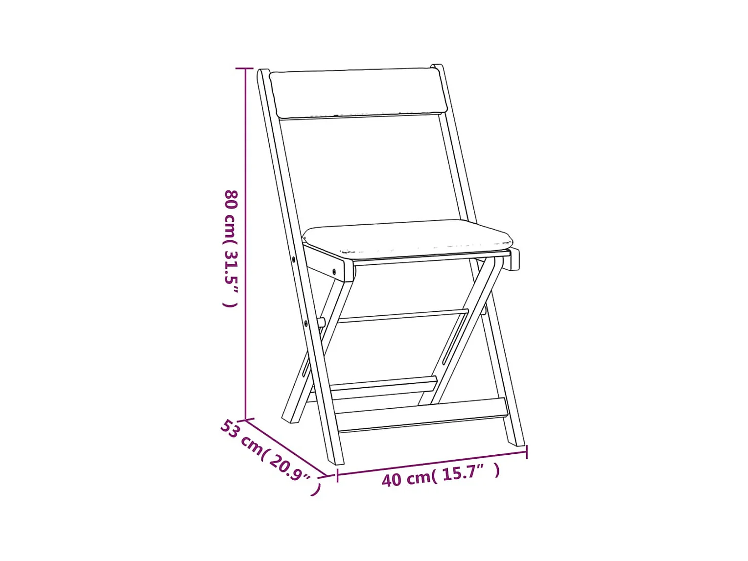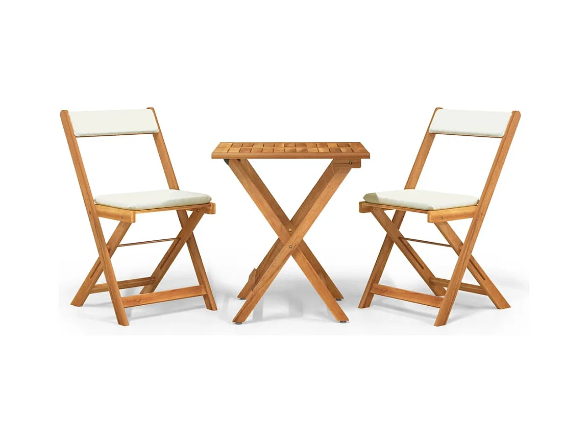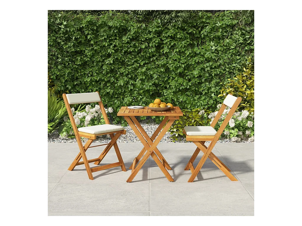 3 pcs conjunto bistrô dobrável c/ almofadões acácia maciça