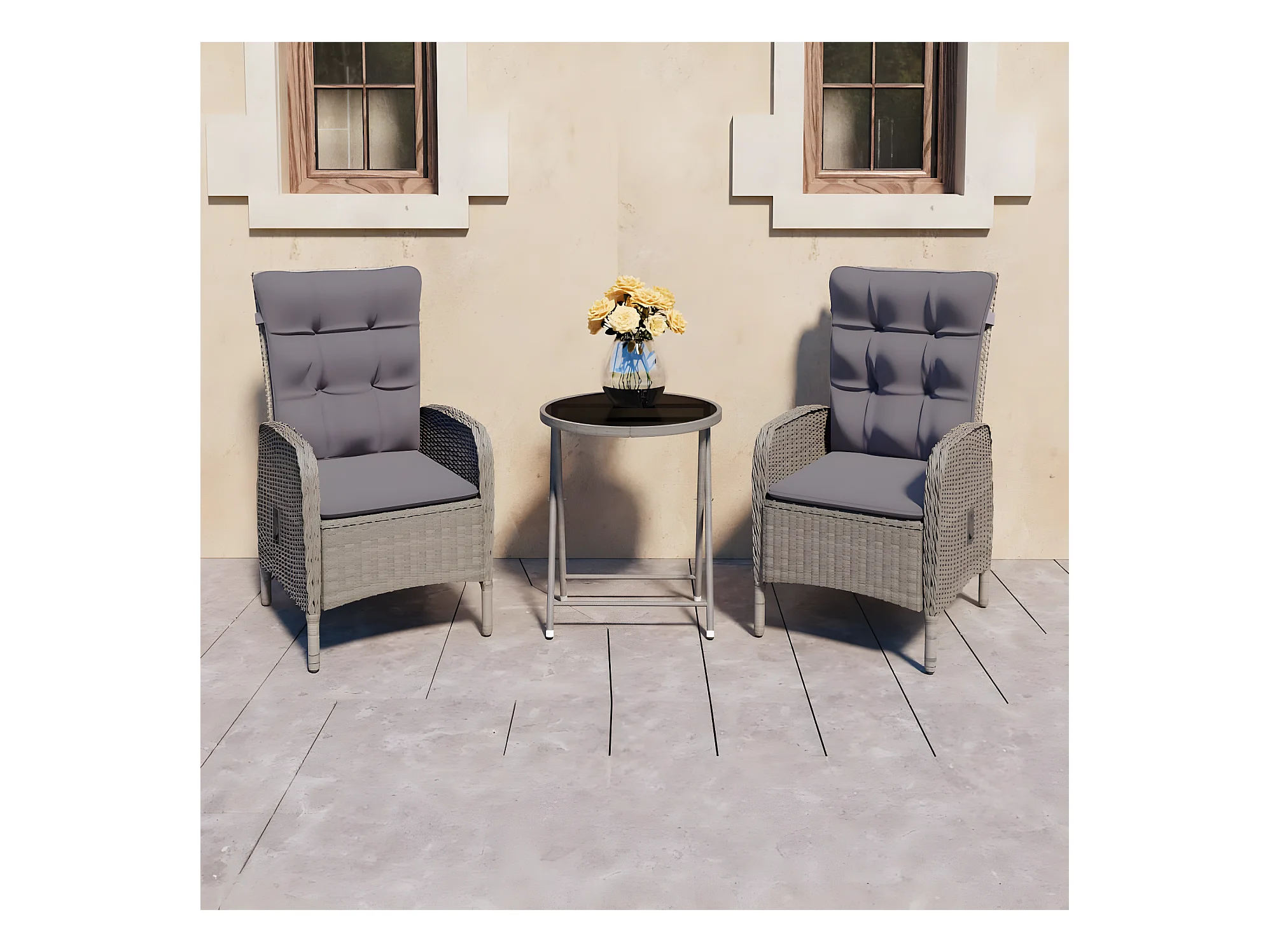 3 pcs conjunto bistrô jardim vime PE e vidro temperado cinzento PT890622
