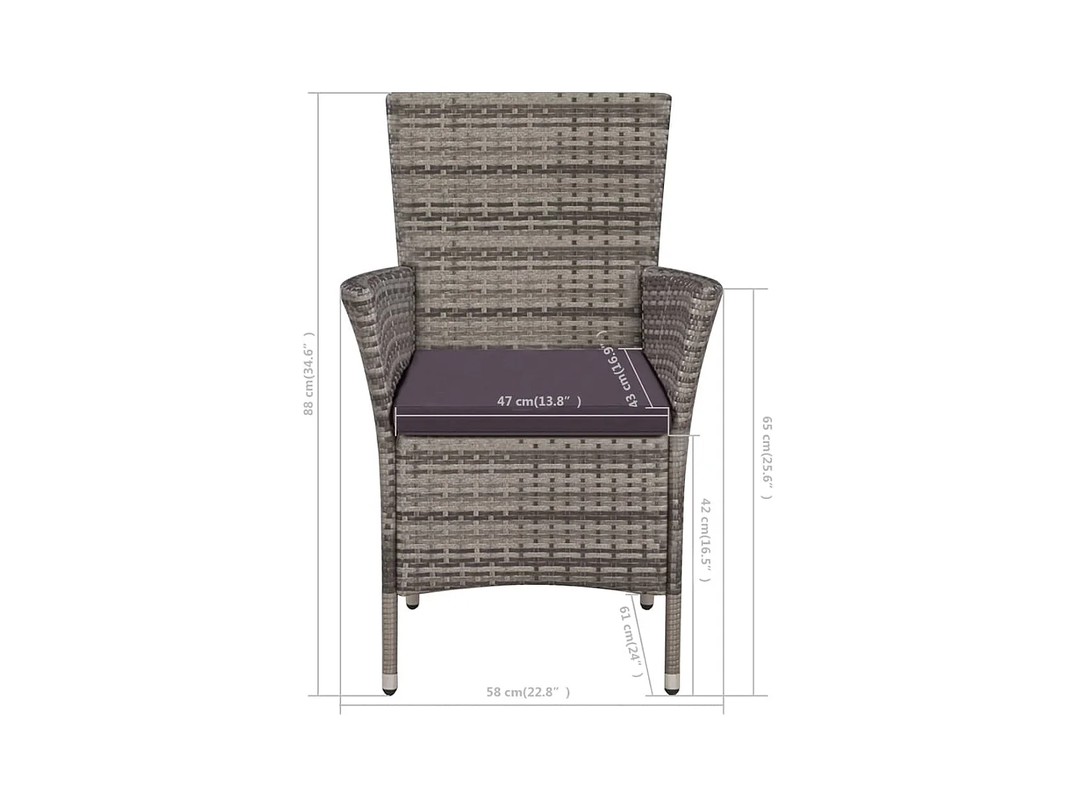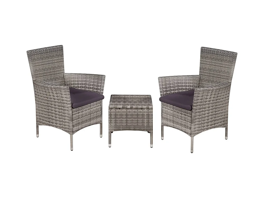 3 pcs conjunto bistrô com almofadões vime PE cinzento