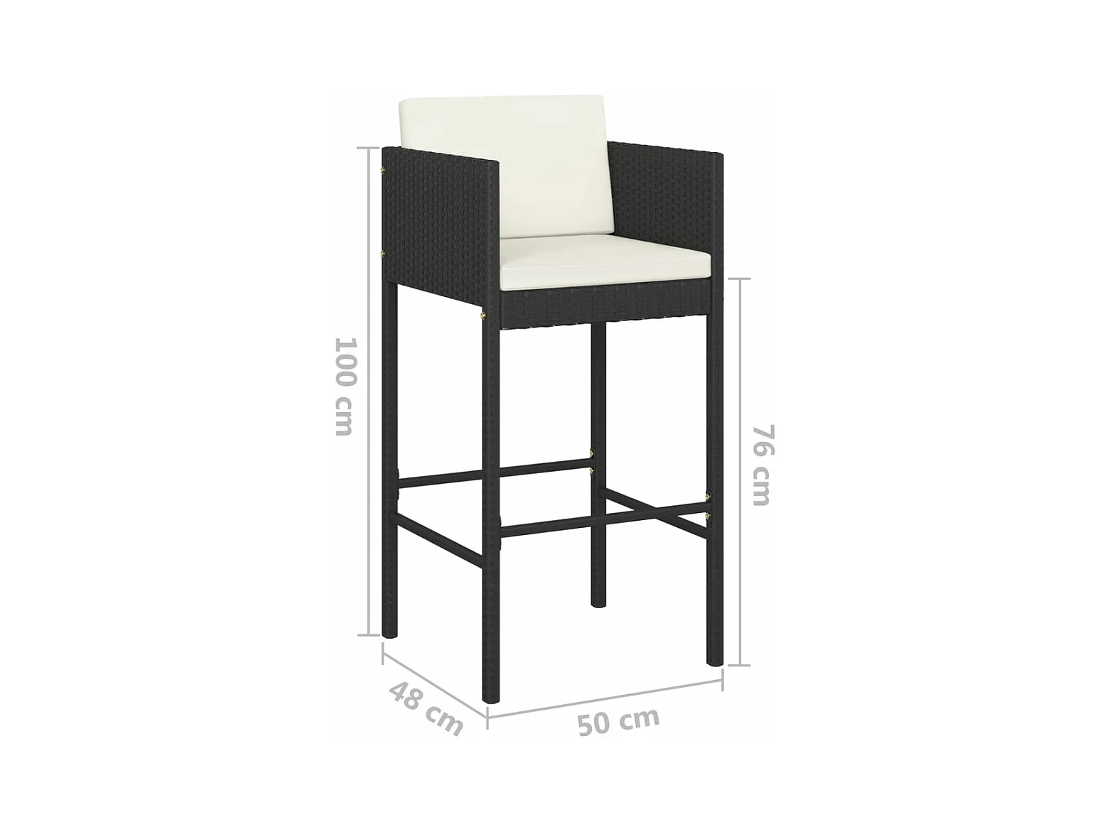 3 pcs conjunto de bar para jardim com almofadões vime PE preto