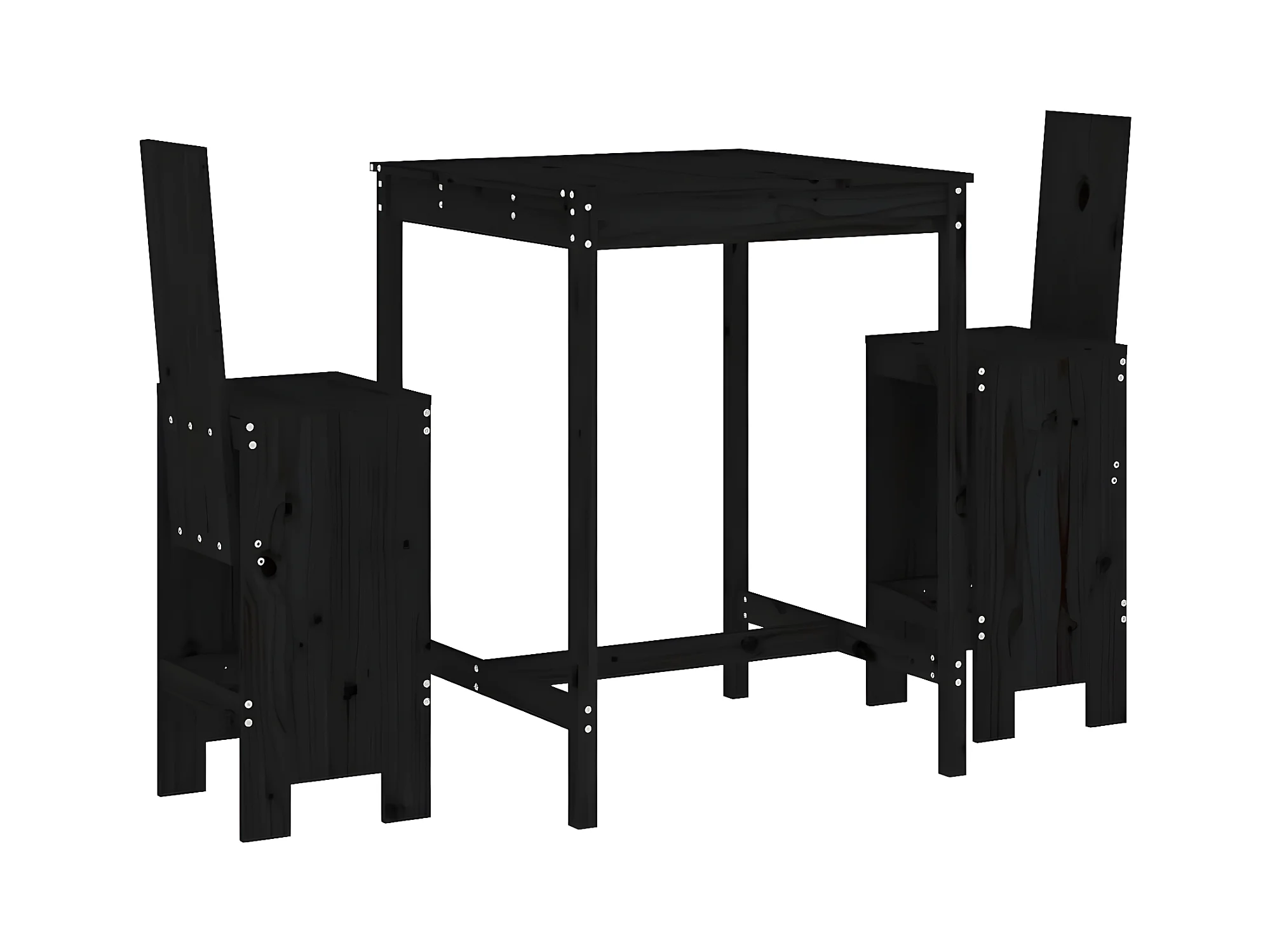 3 pcs conjunto de bar para jardim pinho maciço preto PT206449