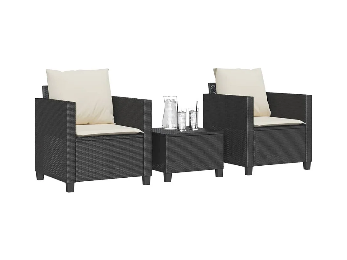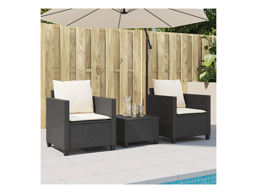 3 pcs conjunto de bistrô com almofadões vime PE preto