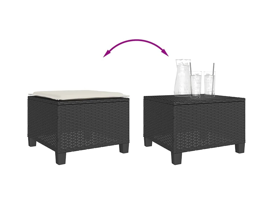 9 pcs conjunto de jantar p/ jardim c/ almofadões vime PE preto
