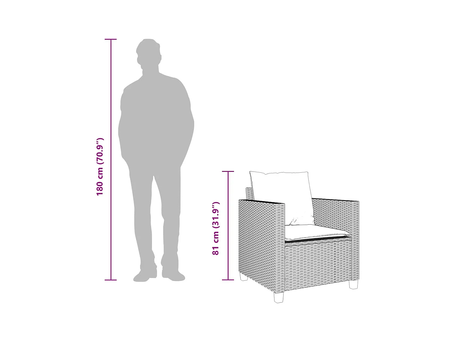 7 pcs conjunto de jantar p/ jardim c/ almofadões vime PE preto