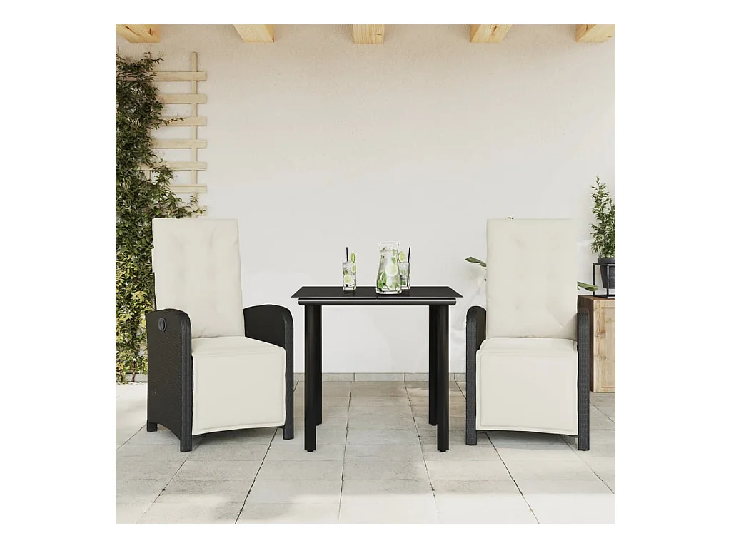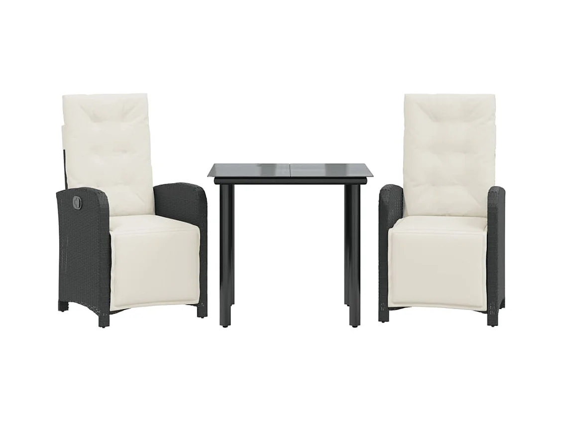 3 pcs conjunto de bistrô com almofadões vime PE/vidro preto PT199536