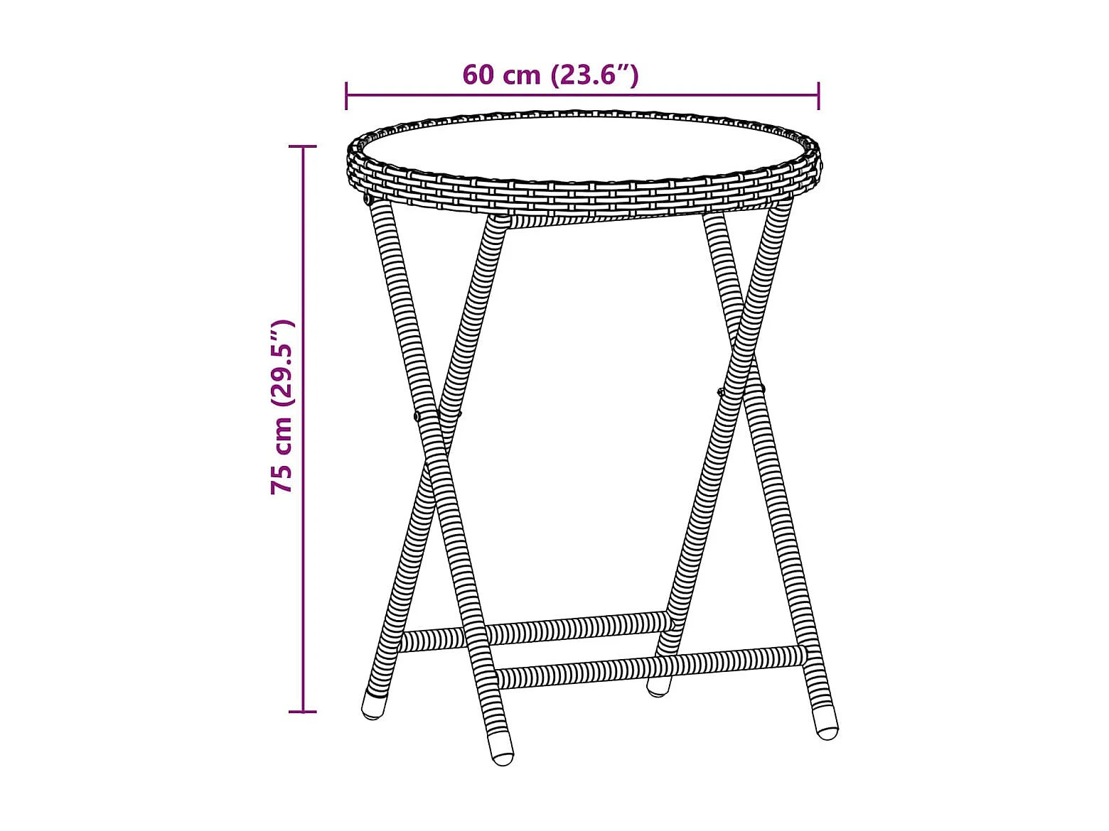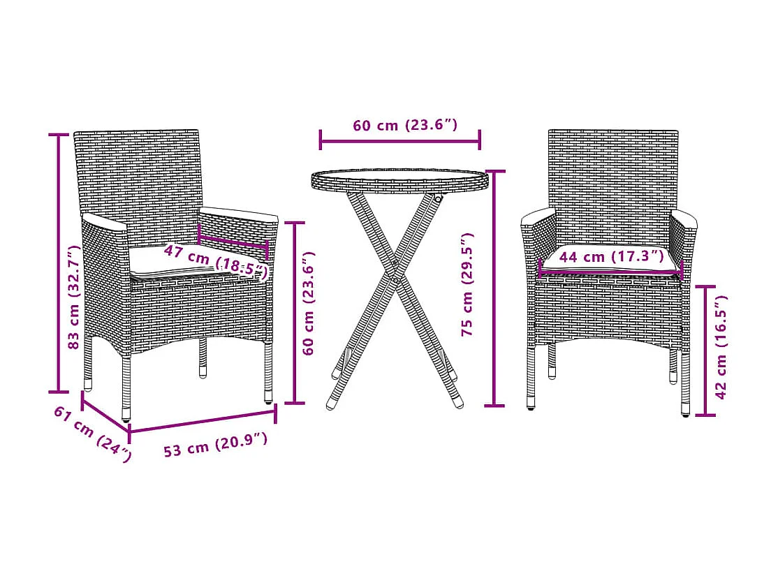 3 pcs conjunto de bistrô com almofadões vime PE/vidro preto