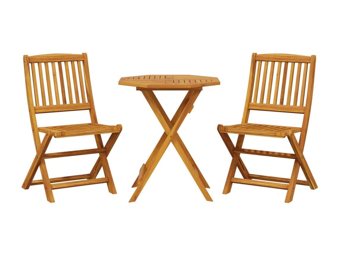 3 pcs conjunto de bistrô dobrável madeira de acácia maciça PT311387