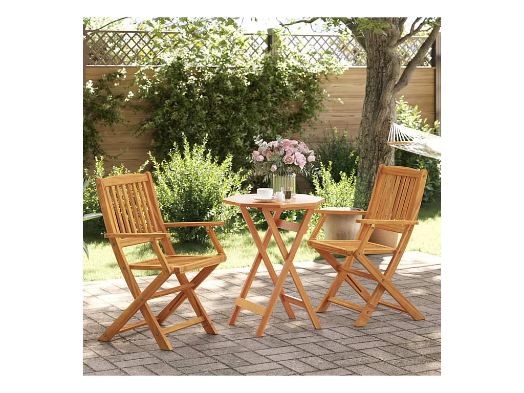 3 pcs conjunto de bistrô dobrável madeira de acácia maciça PT311387